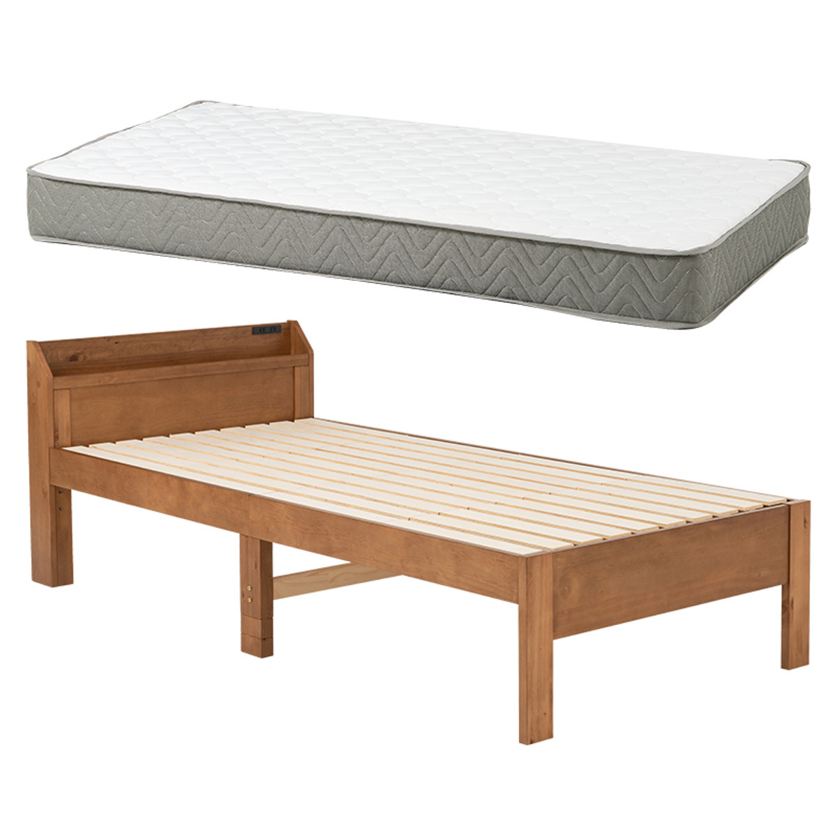 | 材質 | ベッド:天然木(パイン材) マットレス:<主材>ポケットコイル<張地>ポリエステル |