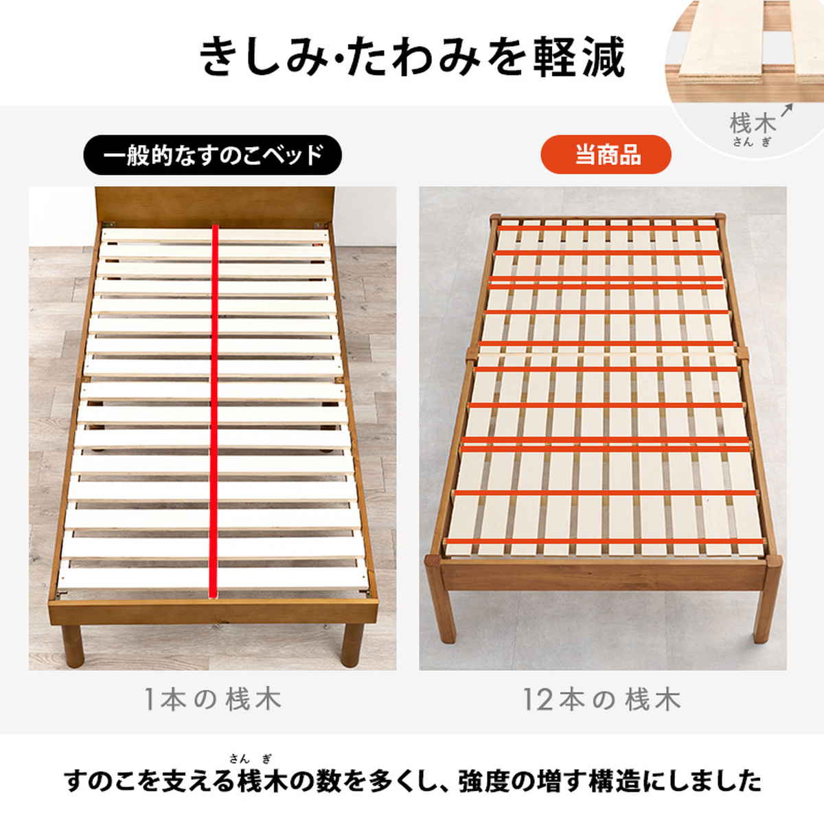 耐荷重は350kgと高耐久仕様です。すのこを支える12本の桟木を厚くして強度を上げることで、きしみやたわみを軽減します。