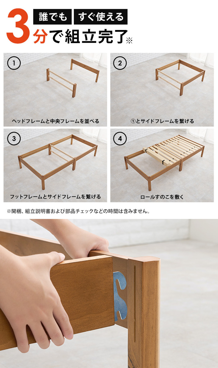 ネジも工具も不要の3分組み立てベッドフレーム
