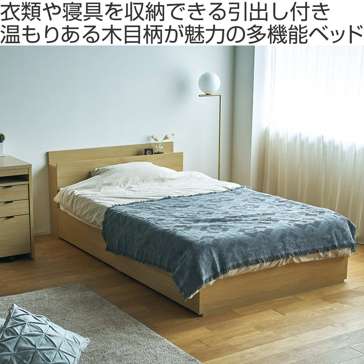 衣類や寝具を収納できる引出し付きベッド セミダブル