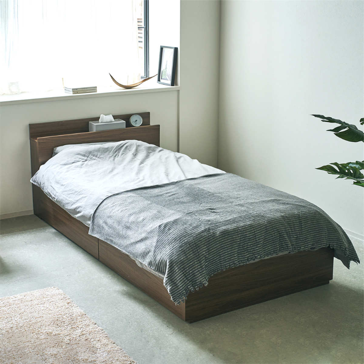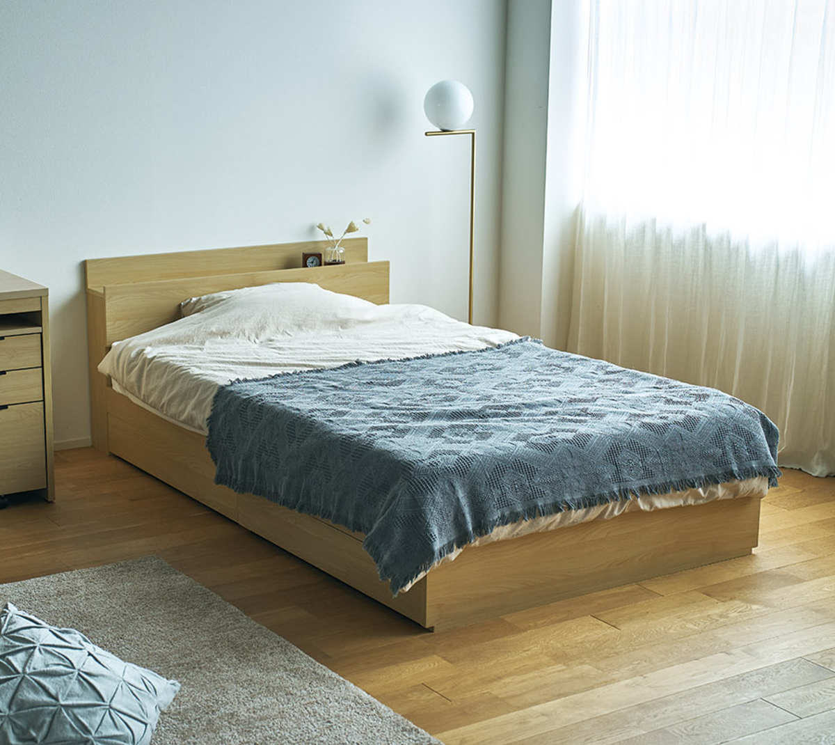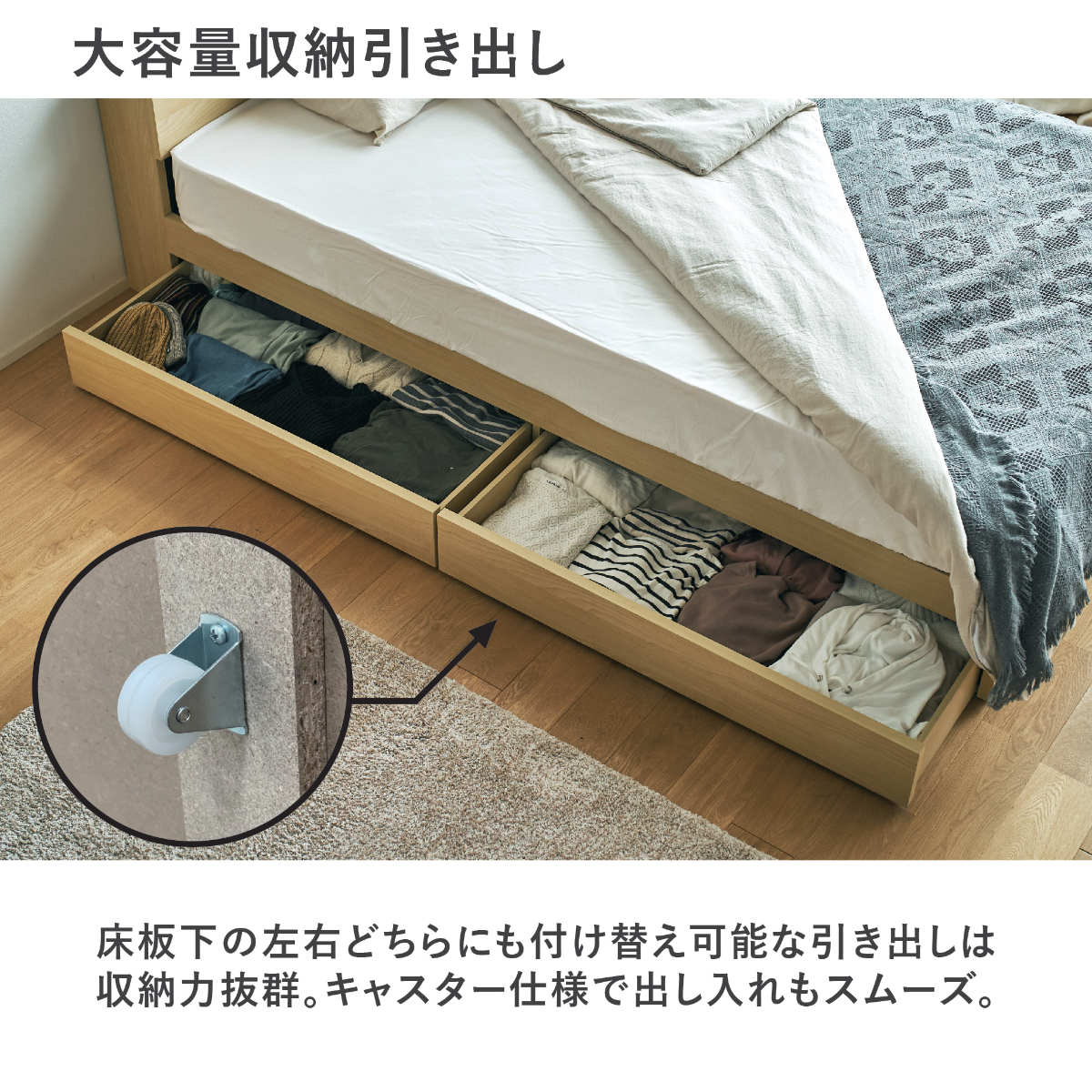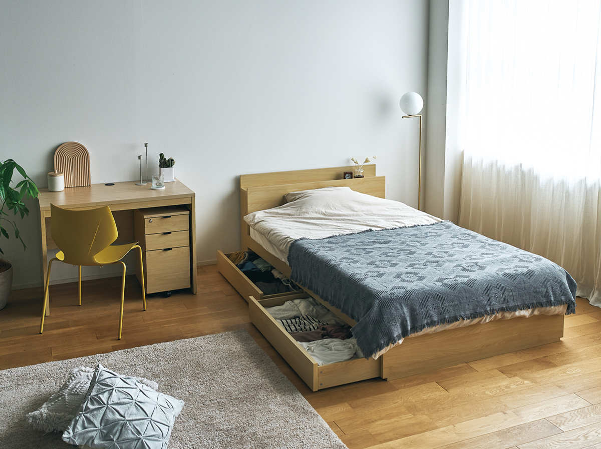 衣類や寝具を収納できる引出し収納付きベッド