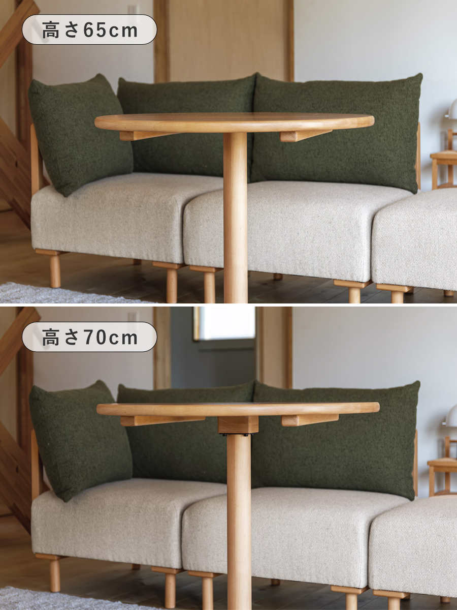 テーブルの天板裏に高さ調節パーツを取り付けることで、用途や身長に合わせて天板の高さを2段階で調節することができます。