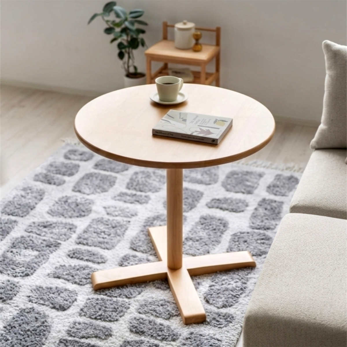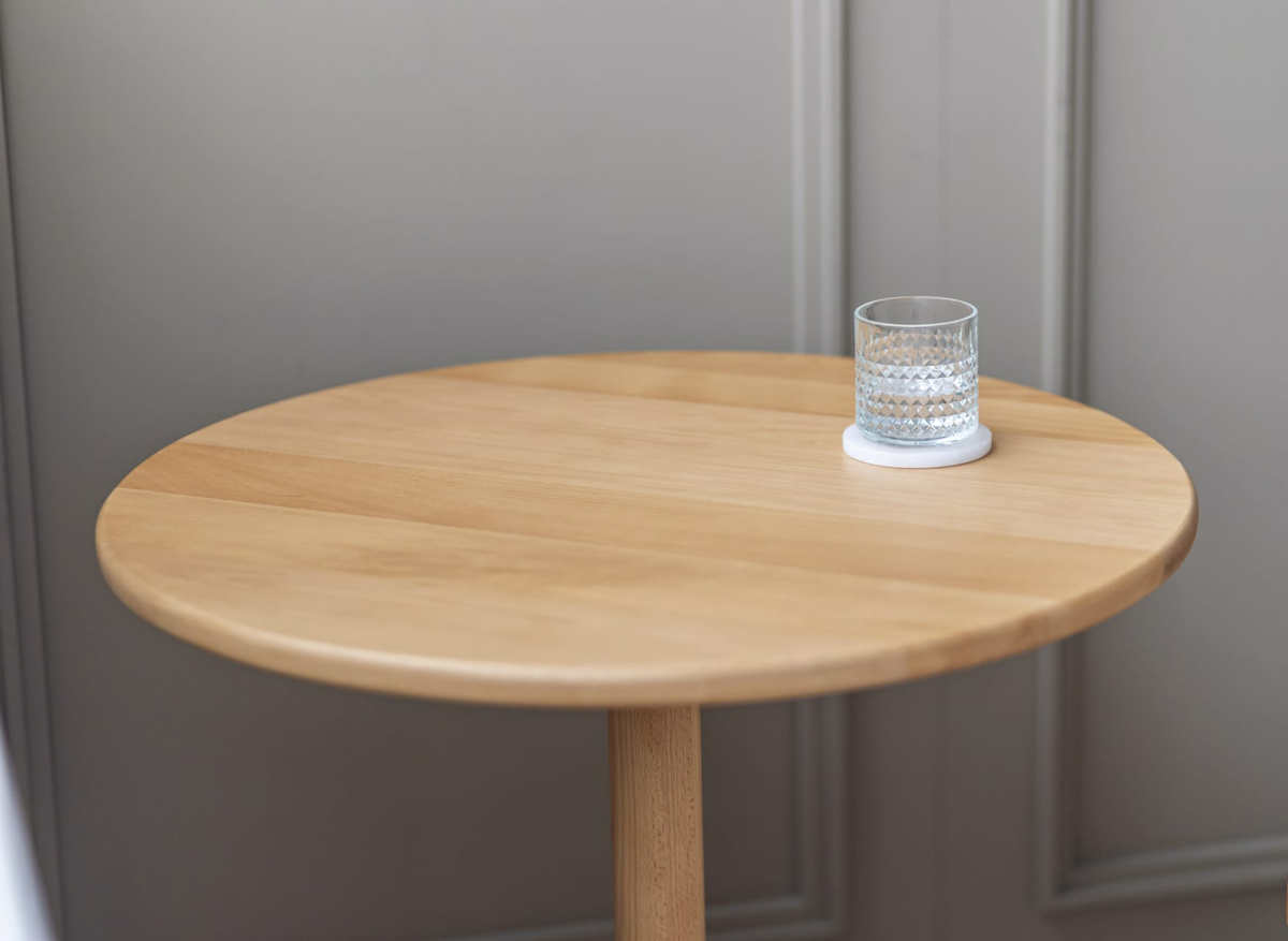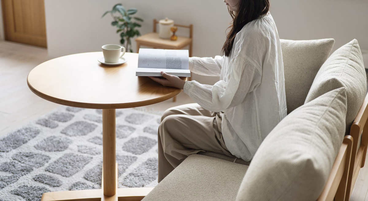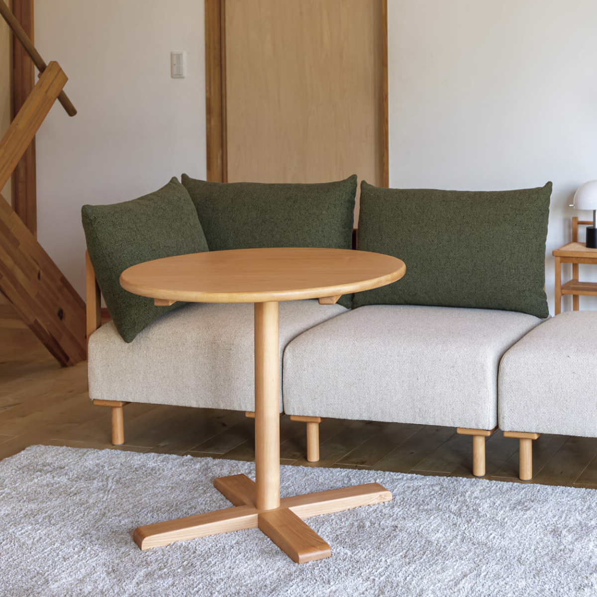 暮らしに合わせてシリーズで自由な組み合わせができるシリーズのダイニングテーブルです。ラウンド型の天板は、ソファ前でも圧迫感がなくコンパクトな空間で使いやすいサイズ感です。1本支柱で開放感があり、カフェテーブルのように対面でも使いやすいです。