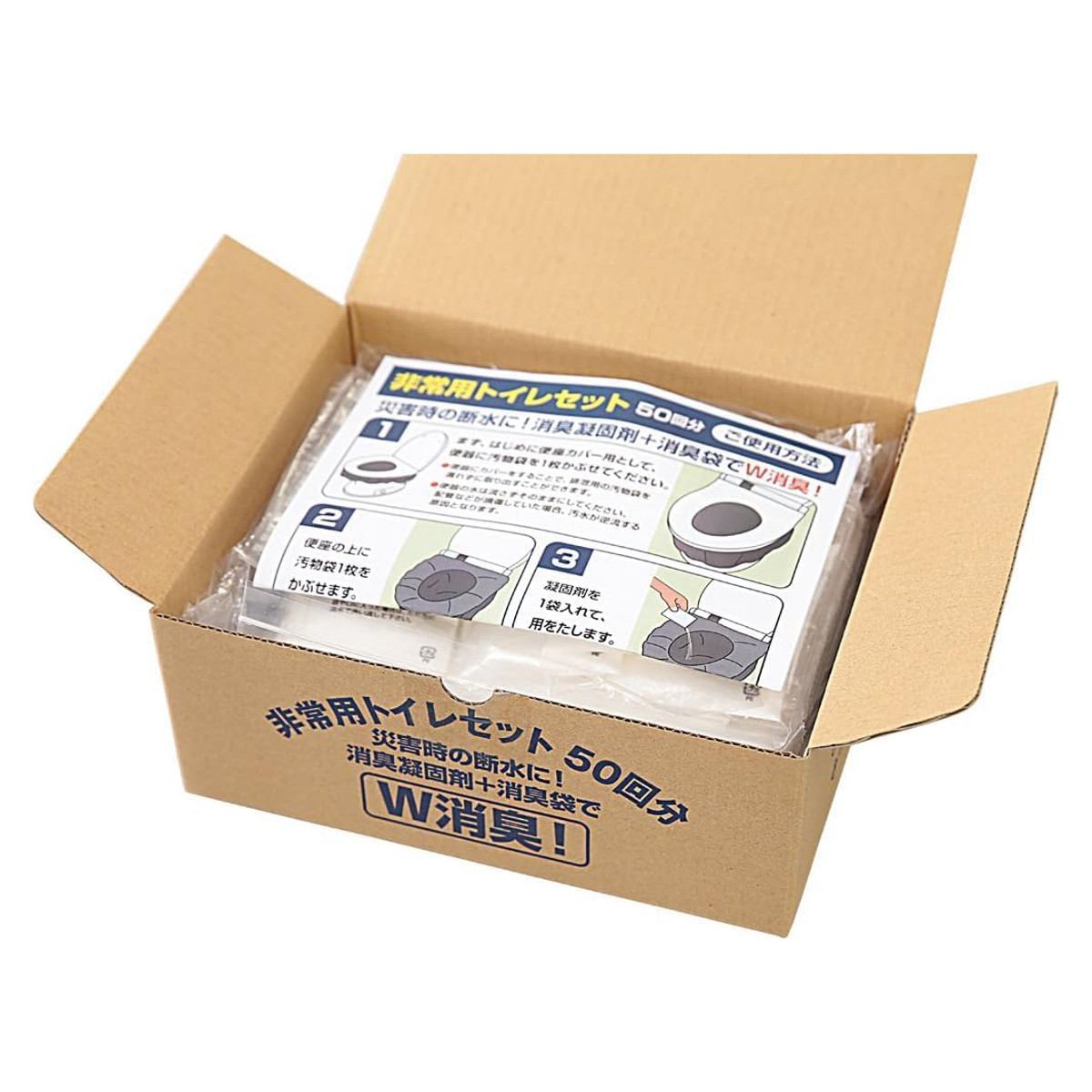 | 内容量 | 50回分セット (トイレ処理袋×55、消臭袋×50、消臭凝固剤×50) |