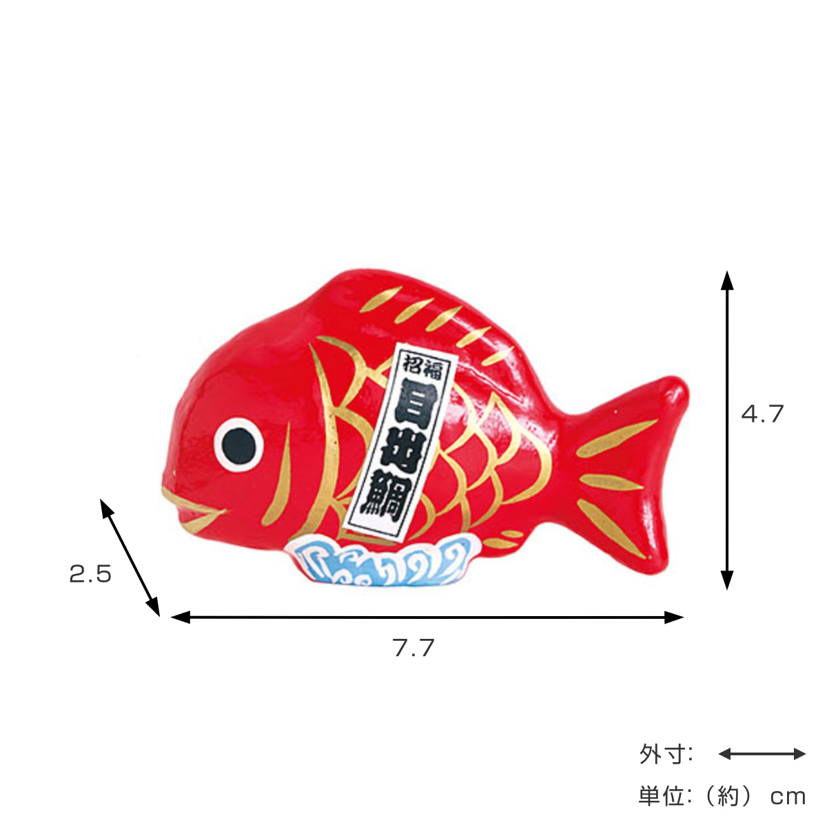 おめでたい意味を持つ鯛をモチーフにした置物です。鮮やかな赤色が目を引き、飾るだけで華やかな雰囲気を演出します。縁起物としてお部屋や玄関の飾りにおすすめのアイテムです。