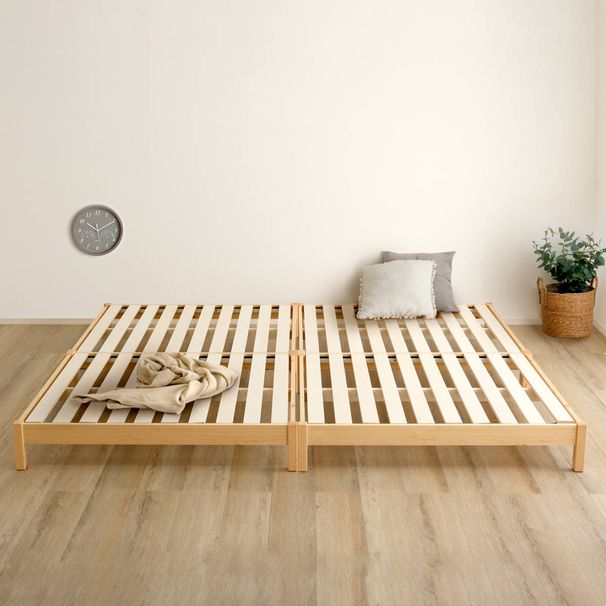 工具やネジを使わず、フレームを差し込み、すのこを木ダボにはめるだけの簡単設計。ベッドフレームが約2分で組み立て完了します。マットレスがセットになっているので、別々に選ぶ手間がなく、届いた日からすぐに快適な眠りを始められます。