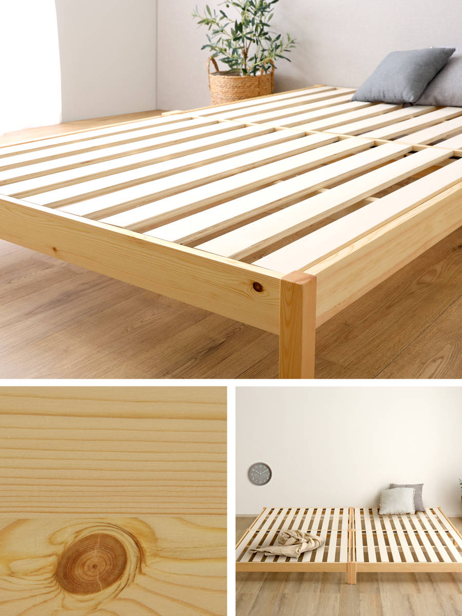 フレームには天然木パイン材を使用しています。優しい風合いと、お部屋を明るく演出してくれるナチュラルな色が魅力。金具が見えないデザインで、スッキリと美しいフォルムです。