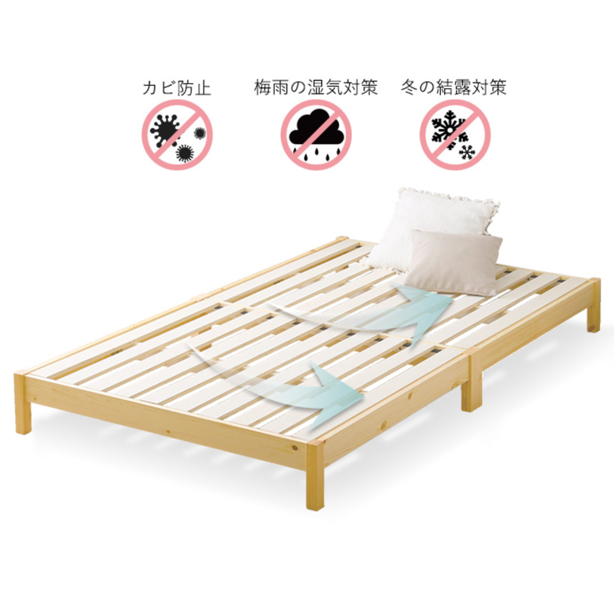 床面には、板のすき間に風が通り、通気性に優れているすのこを使用しています。湿気がたまりにくいため、カビやダニの発生を抑制でき、オールシーズン快適です。