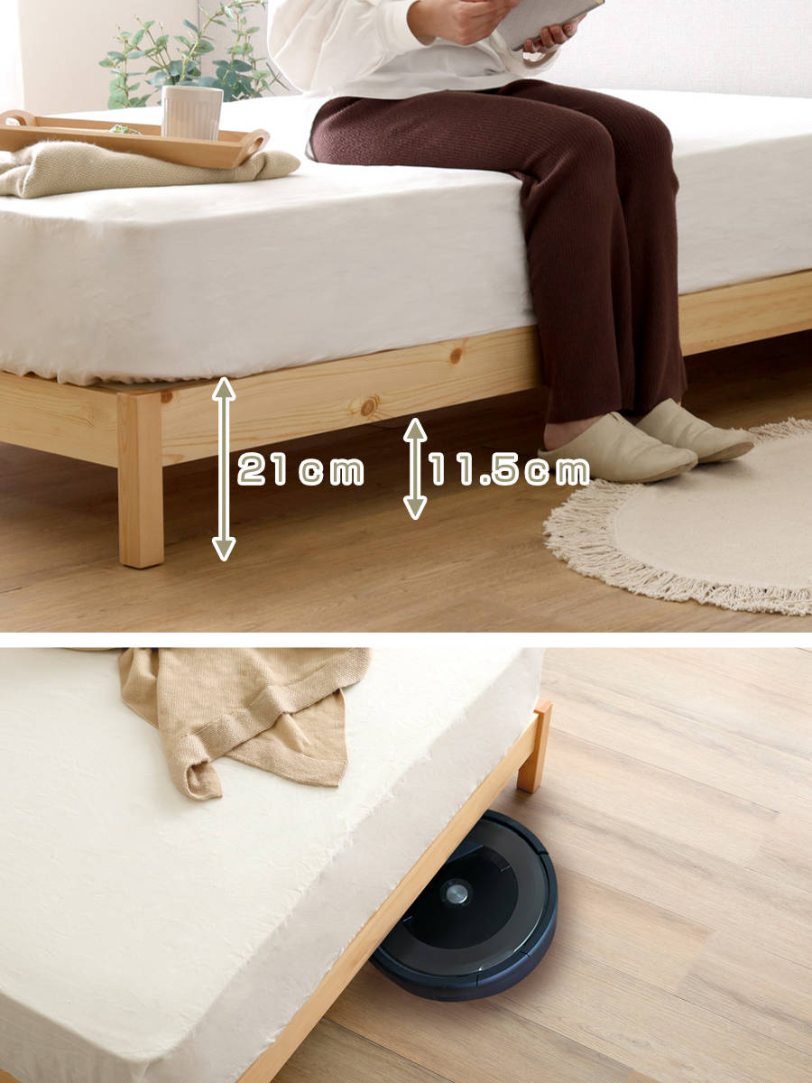 ロースタイルのベッドはお部屋の空間を広く見せ、解放感のある寝室をつくることができます。低いながらも一般的なお掃除ロボットも通れる高さで、いつでも清潔を保てます。