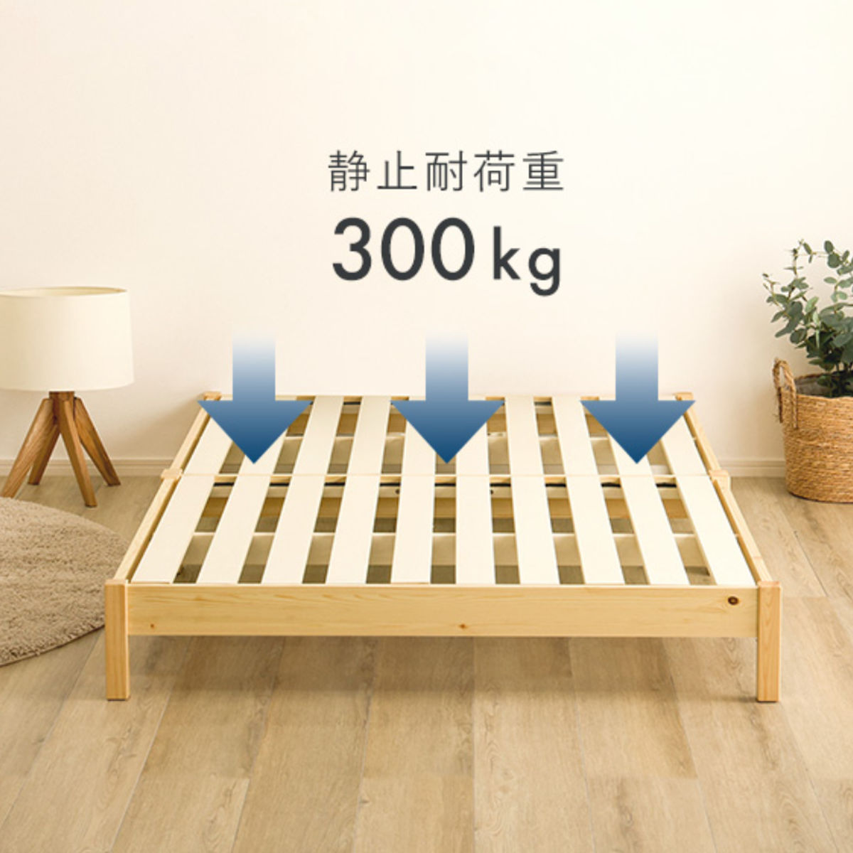すのこは薄い板を繊維方向に合わせて何層も重ねた積層材のLVLを採用。強度がありながら軽量な素材です。フレームは2本の桟がすのこのたわみを軽減し、しっかりとした脚で支えます。
