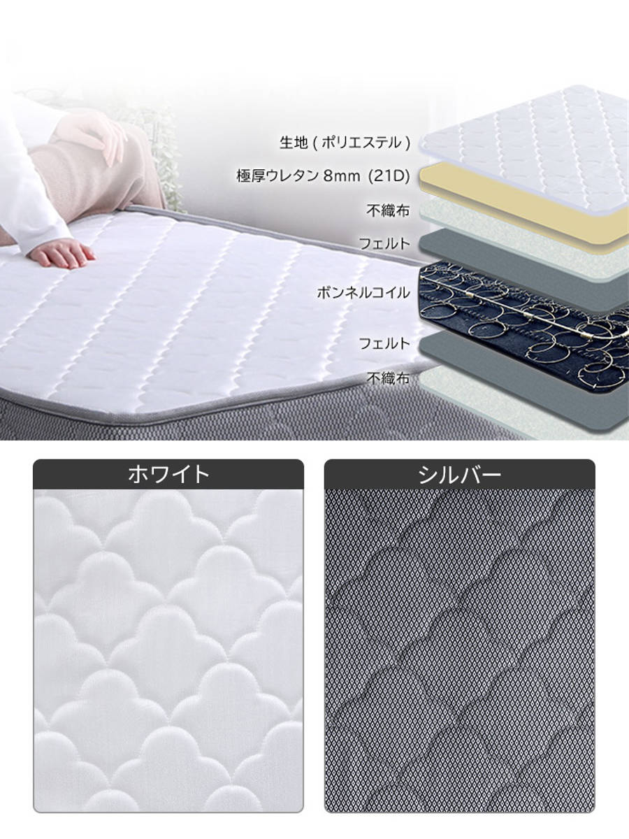![]() マットレス付き(ハイタイプ) ボンネルコイル | ![]() マットレス付き(ハイタイプ) ポケットコイル |