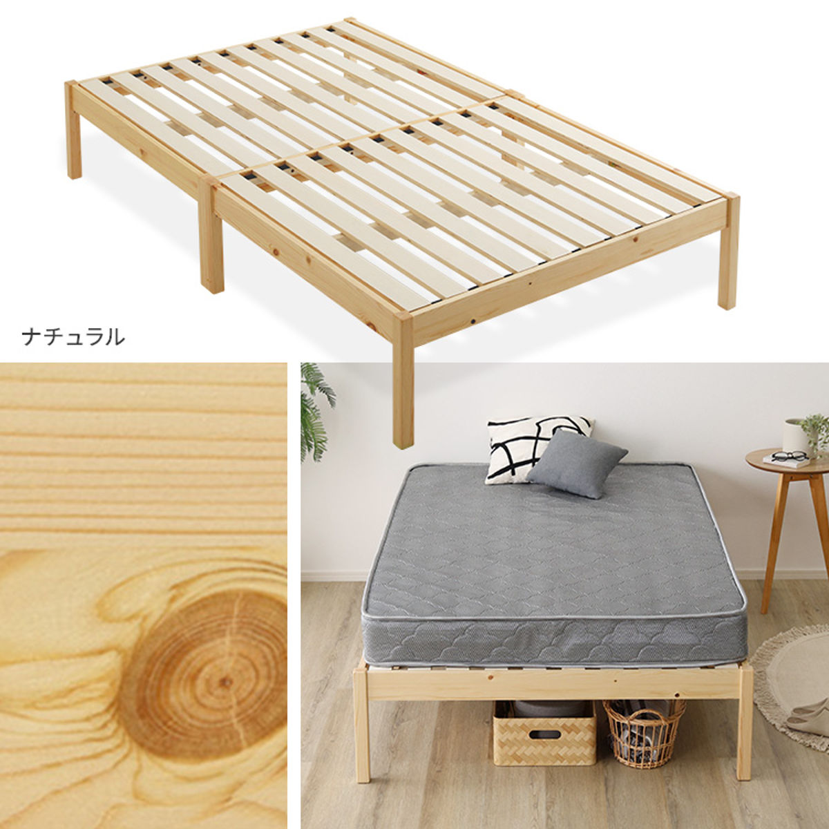フレームには天然木パイン材を使用しています。優しい風合いと、お部屋を明るく演出してくれるナチュラルな色が魅力。金具が見えないデザインで、スッキリと美しいフォルムです。