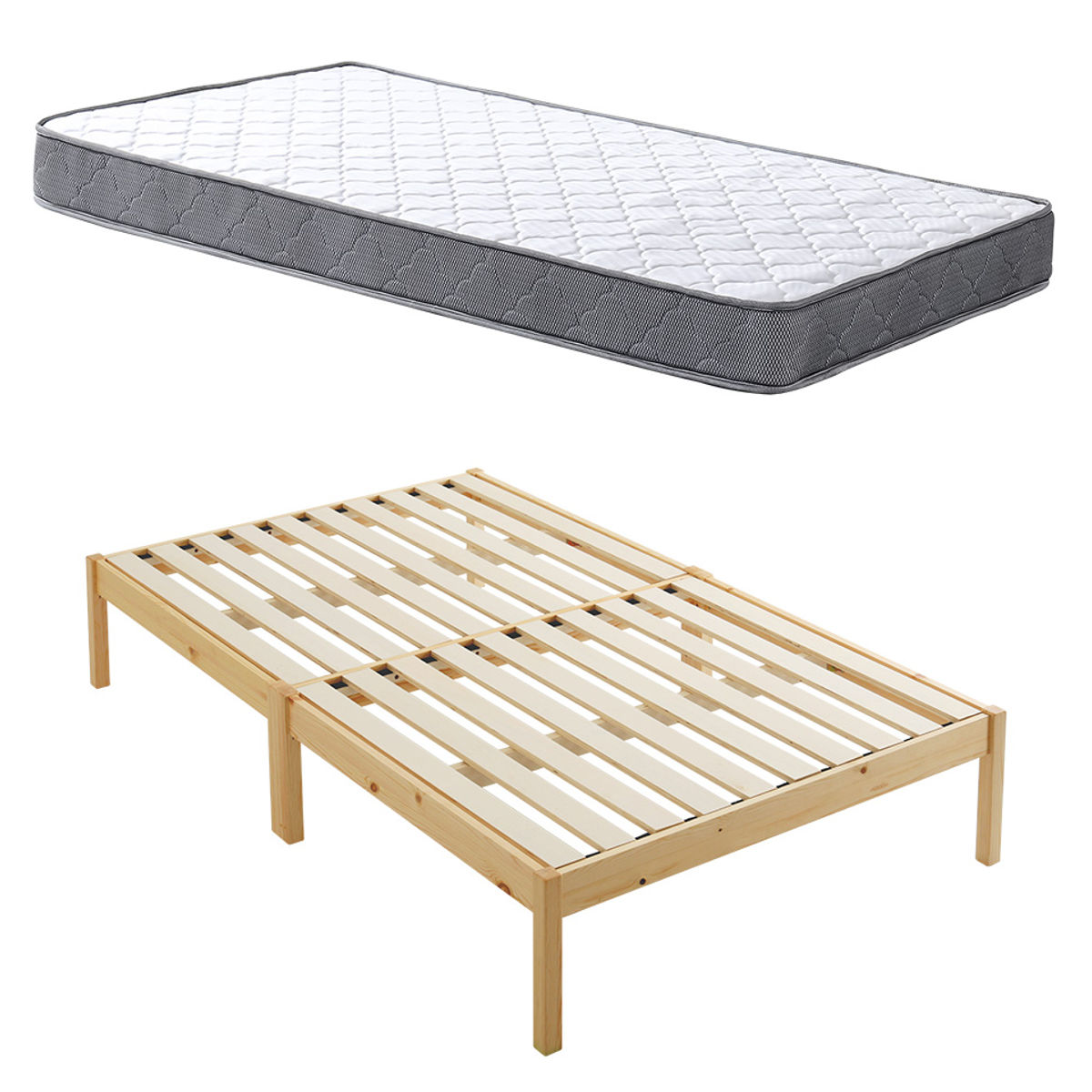 工具やネジを使わず、フレームを差し込み、すのこを木ダボにはめるだけの簡単設計。ベッドフレームが約2分で組み立て完了します。マットレスがセットになっているので、別々に選ぶ手間がなく、届いた日からすぐに快適な眠りを始められます。