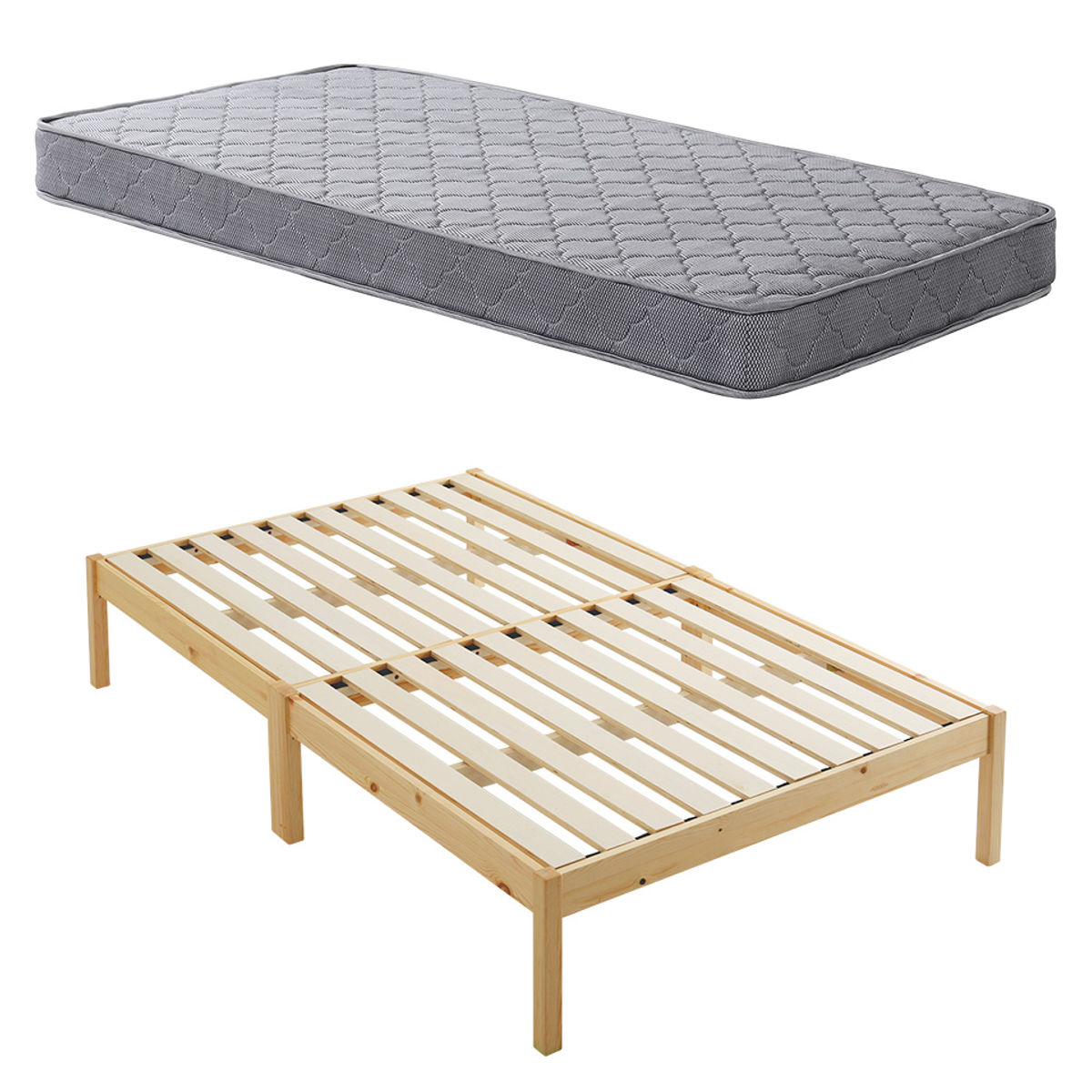 工具やネジを使わず、フレームを差し込み、すのこを木ダボにはめるだけの簡単設計。ベッドフレームが約2分で組み立て完了します。マットレスがセットになっているので、別々に選ぶ手間がなく、届いた日からすぐに快適な眠りを始められます。