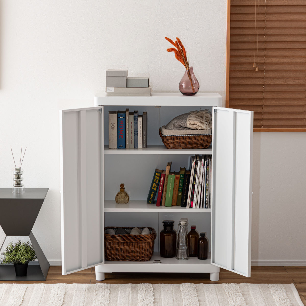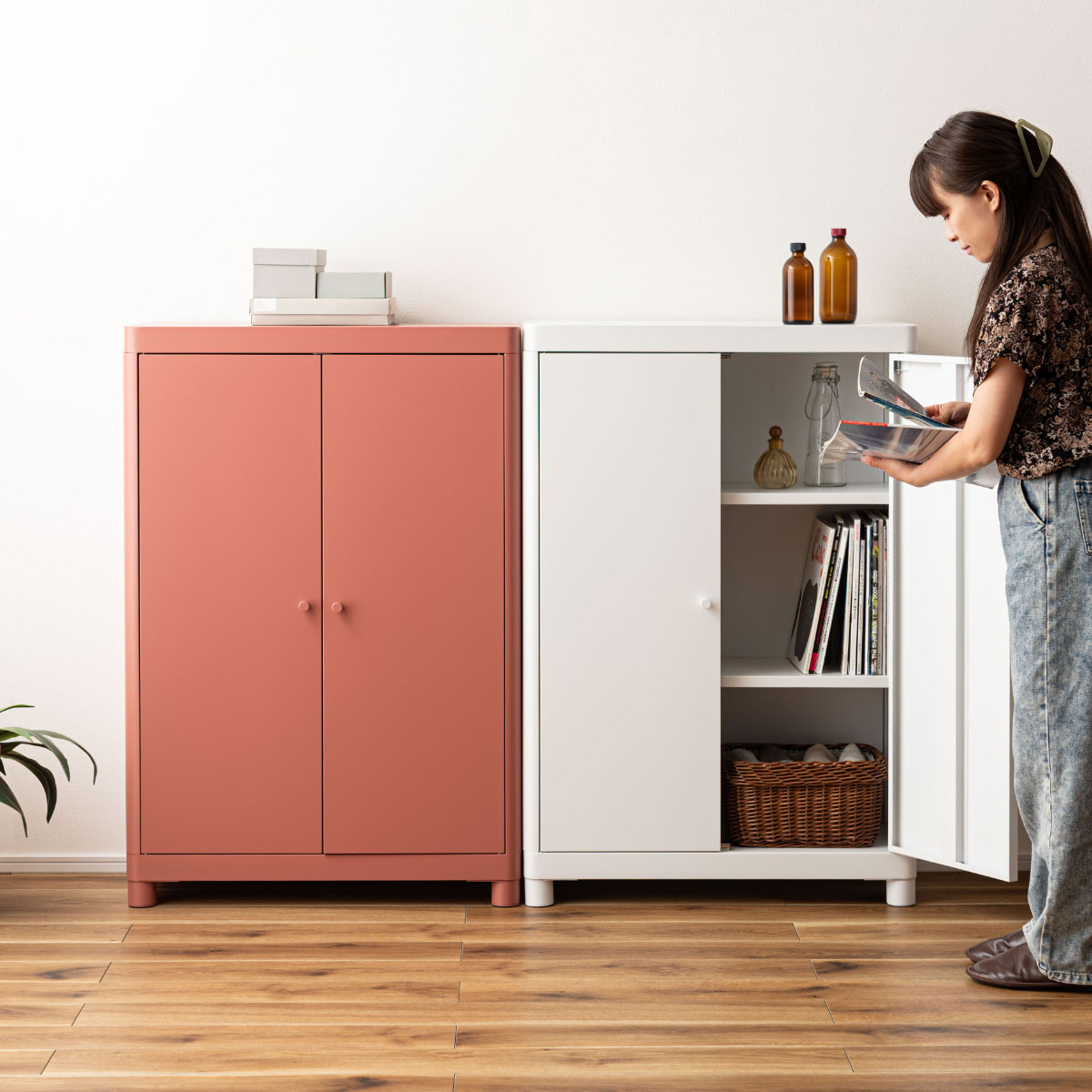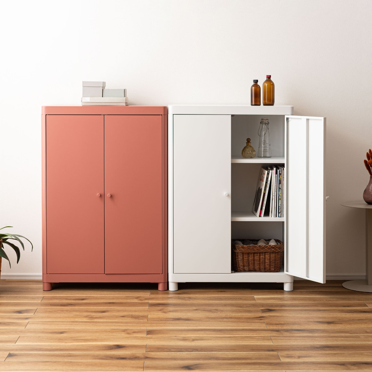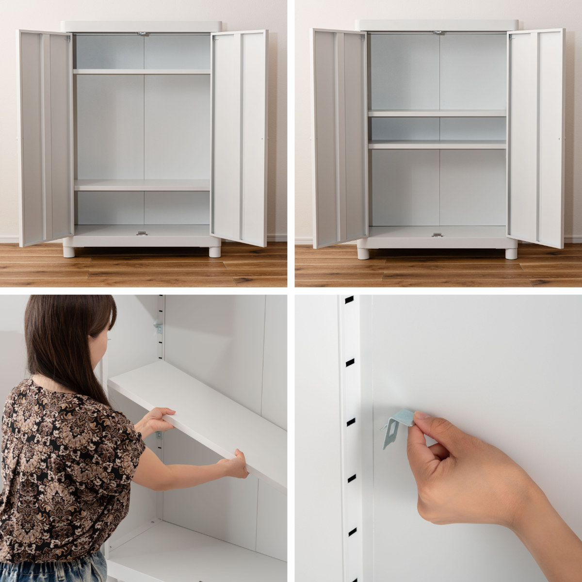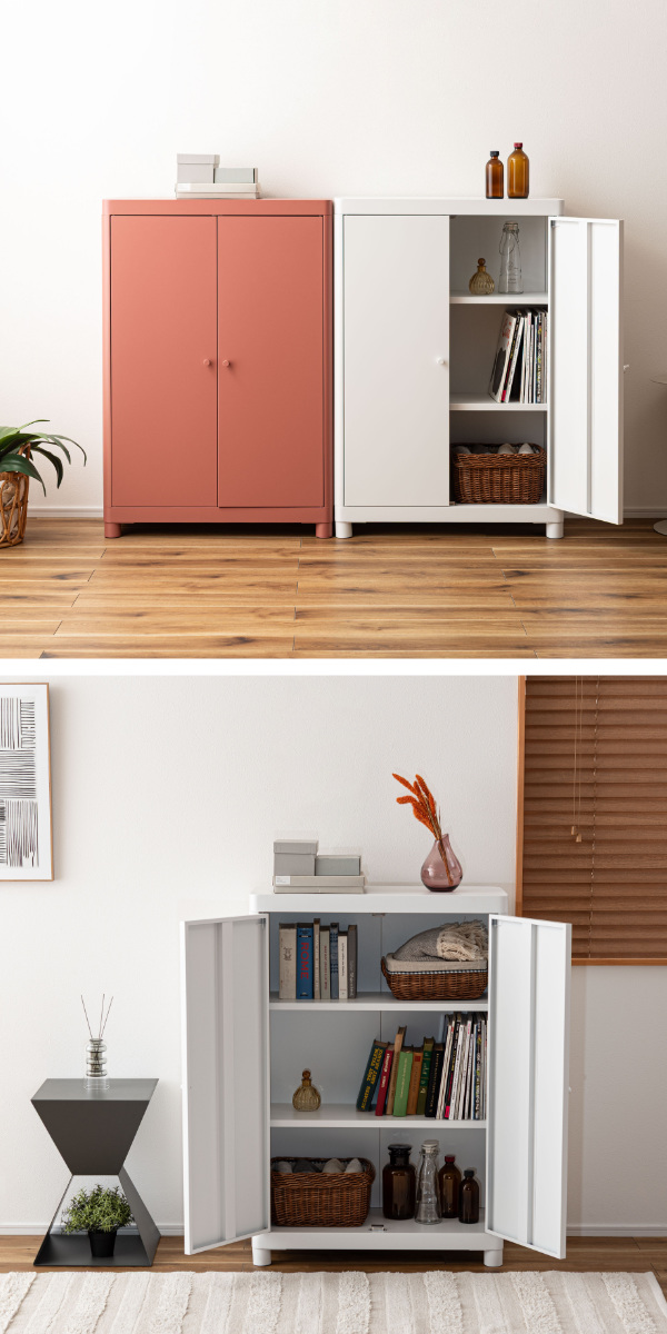シンプルモダンな可動棚付きスチールチェスト
