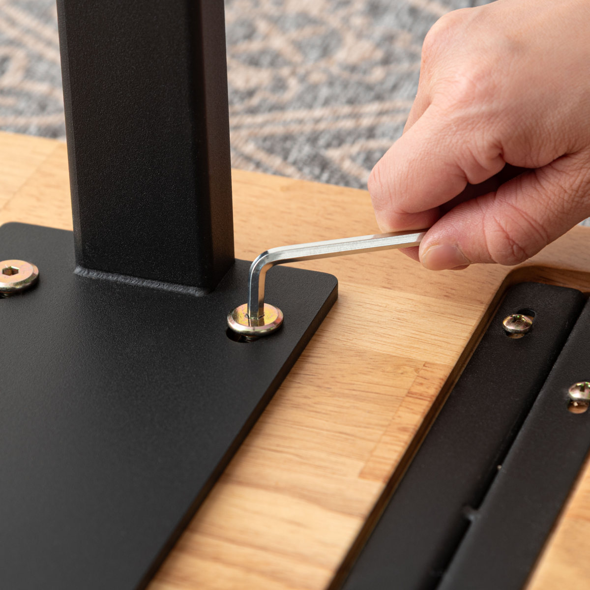 天板に脚を取り付けるだけで完成します。必要な工具は付属しているので、家具の組み立てに慣れていない方でも安心です。