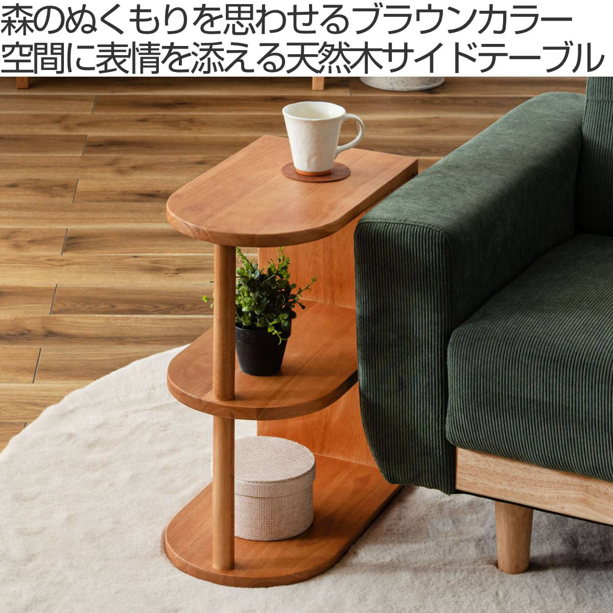 見せる収納を楽しめる天然木サイドテーブル
