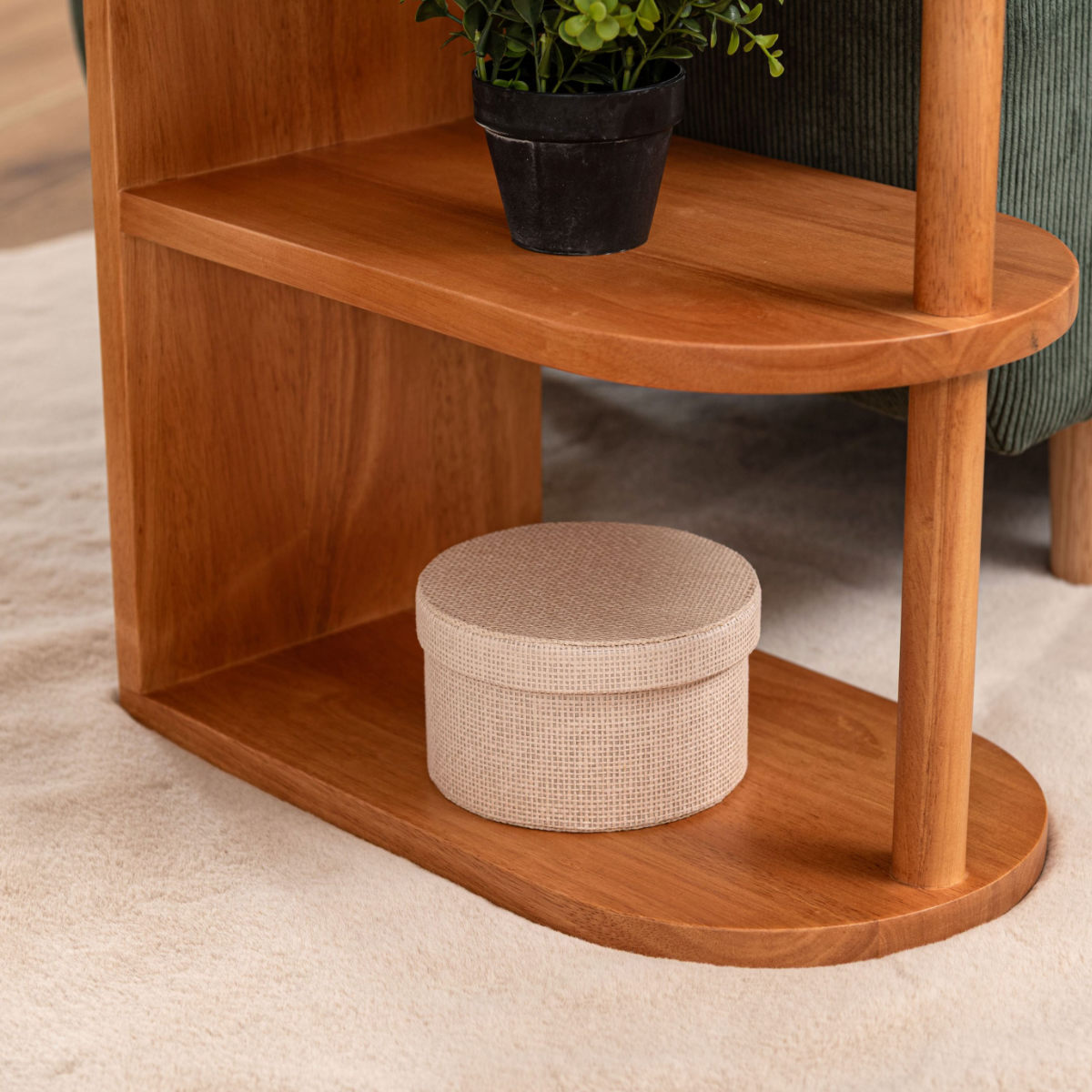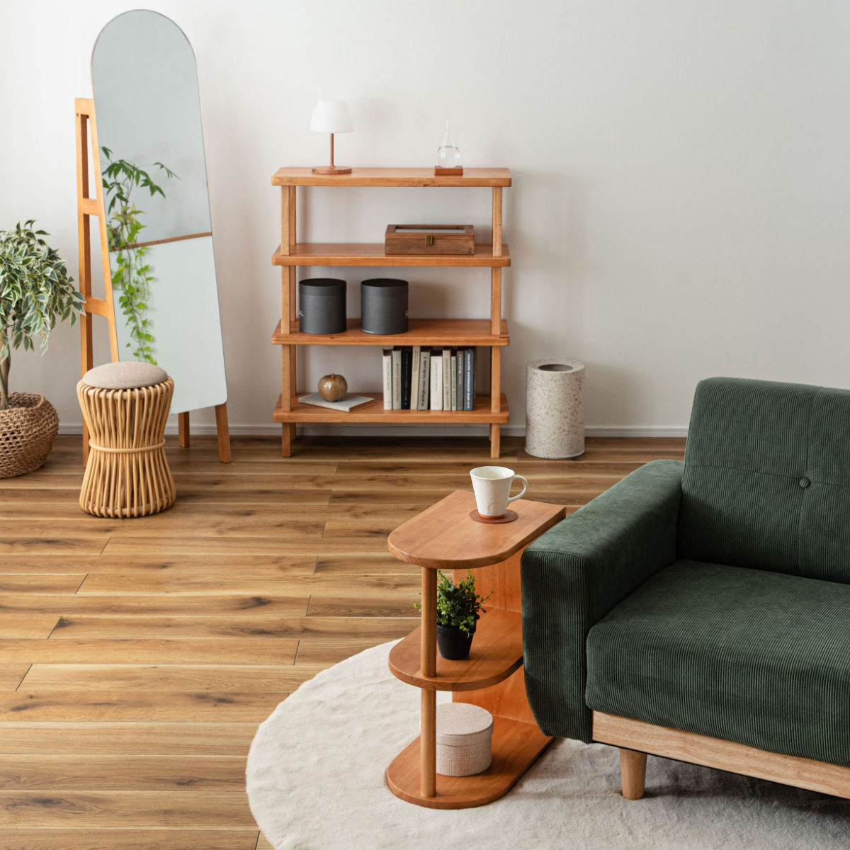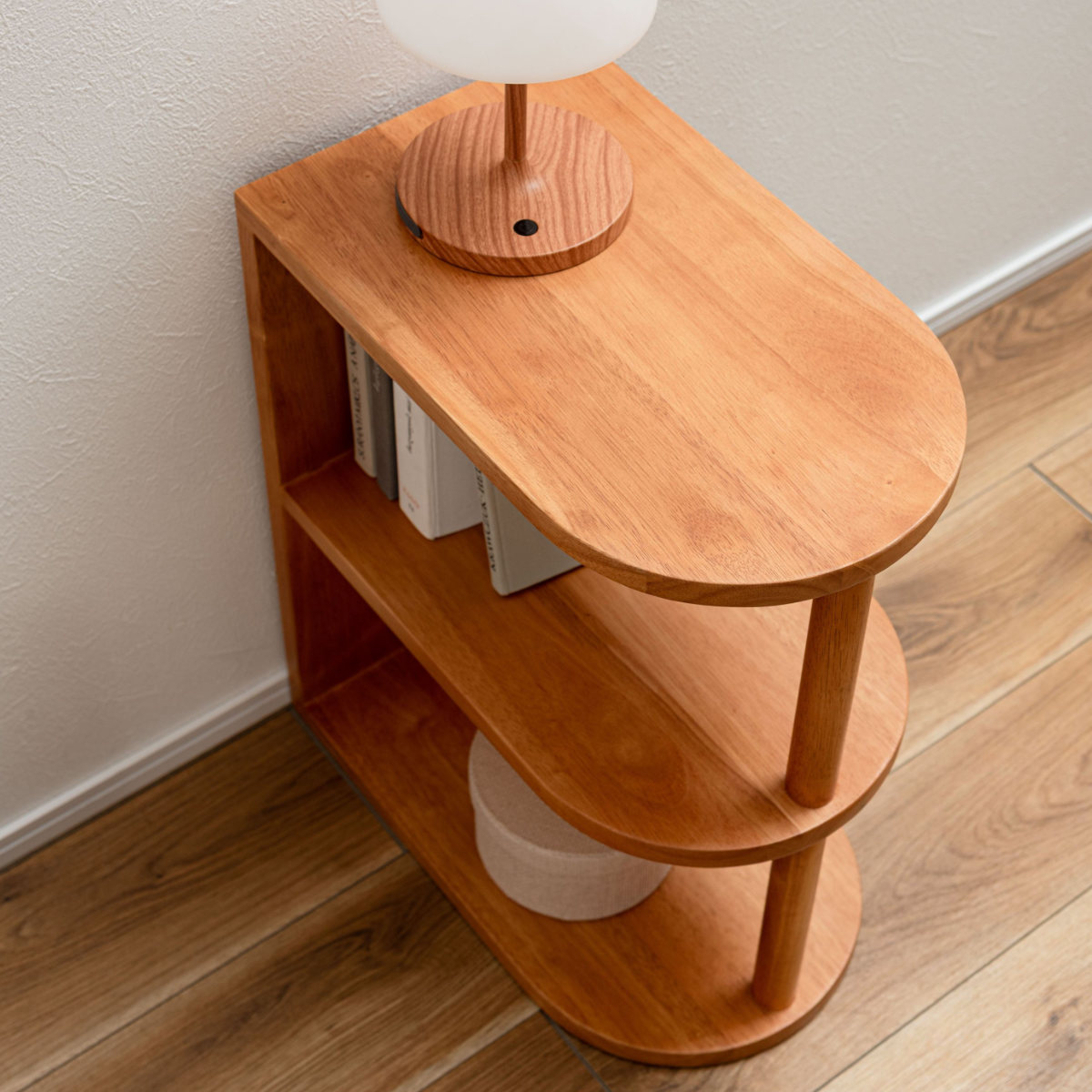 サイドテーブルとしての実用性はもちろん、下段は収納やディスプレイラックとして活用できます。よく使うものを手元に置きながら、お気に入りを飾る楽しさも広がります。