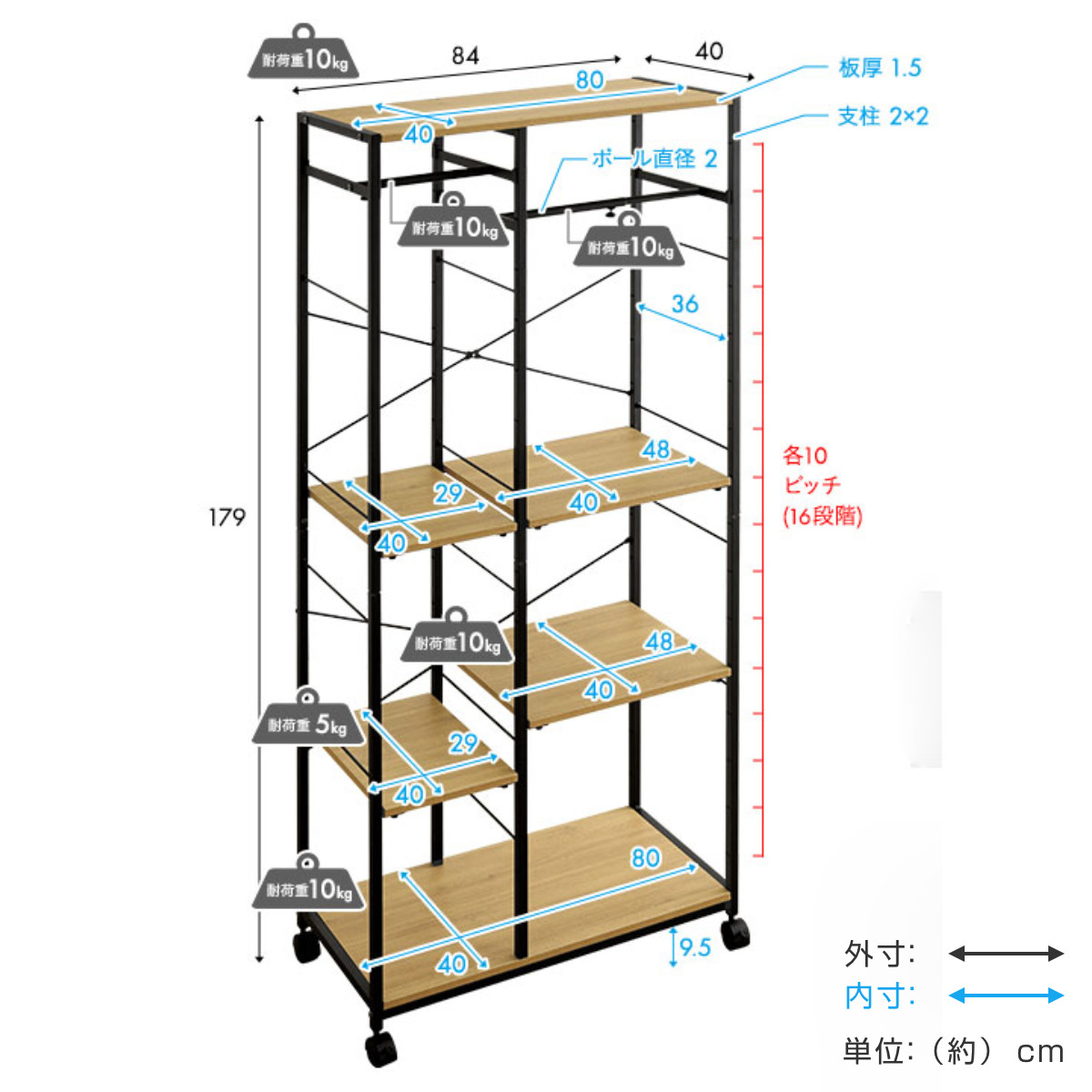 【棚板大小各2枚:10cmピッチ16段階】