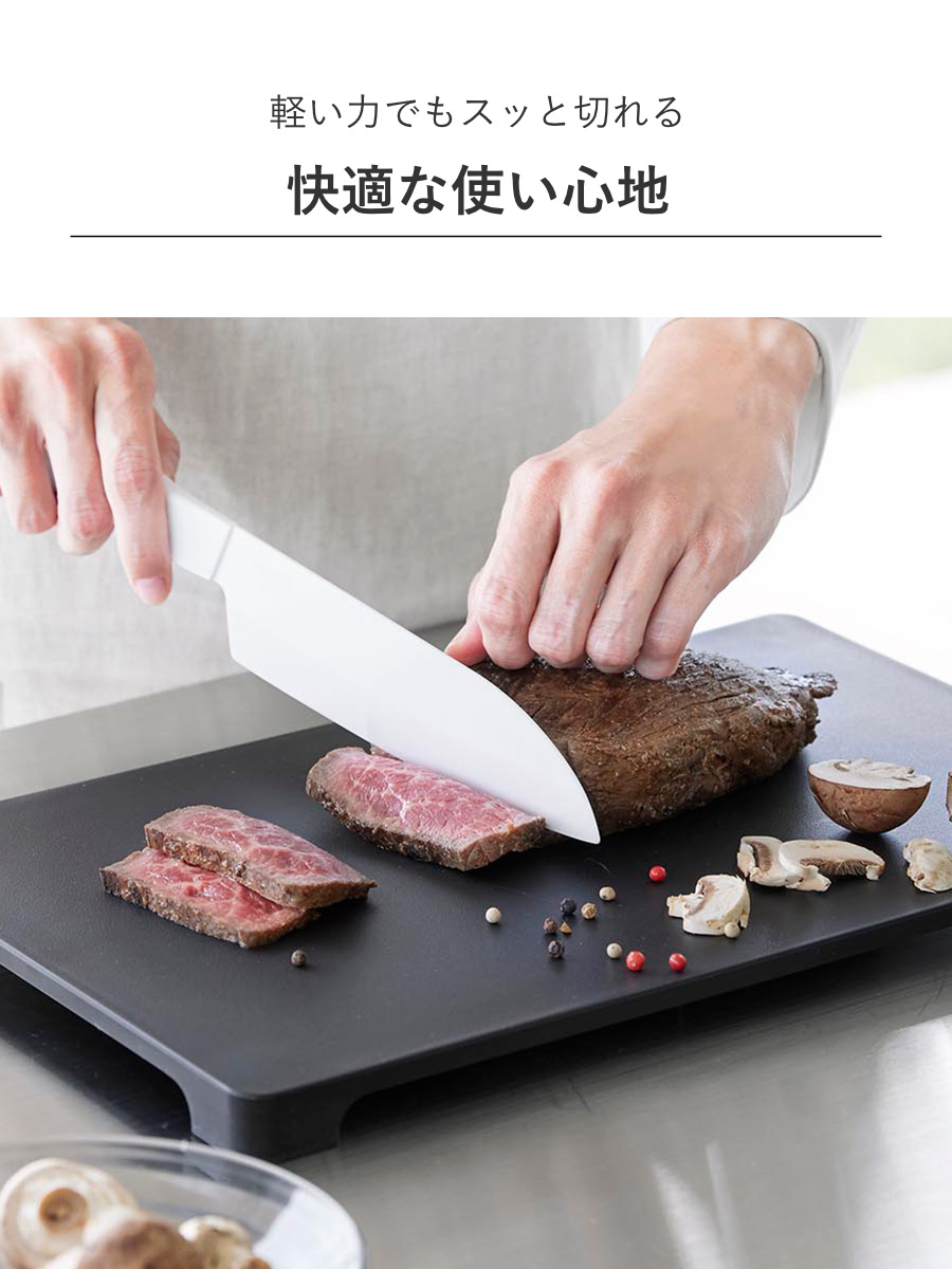 超高圧・高密度成形焼成で作られた純ジルコニアセラミックを使用しています。長時間使っても手が疲れにくく、軽く滑らかな切れ味が続きます。