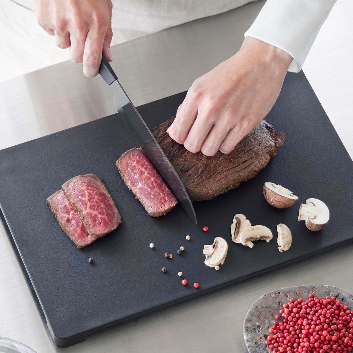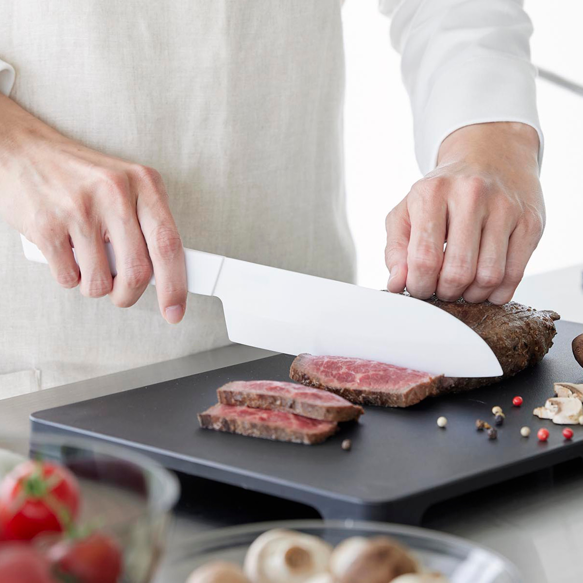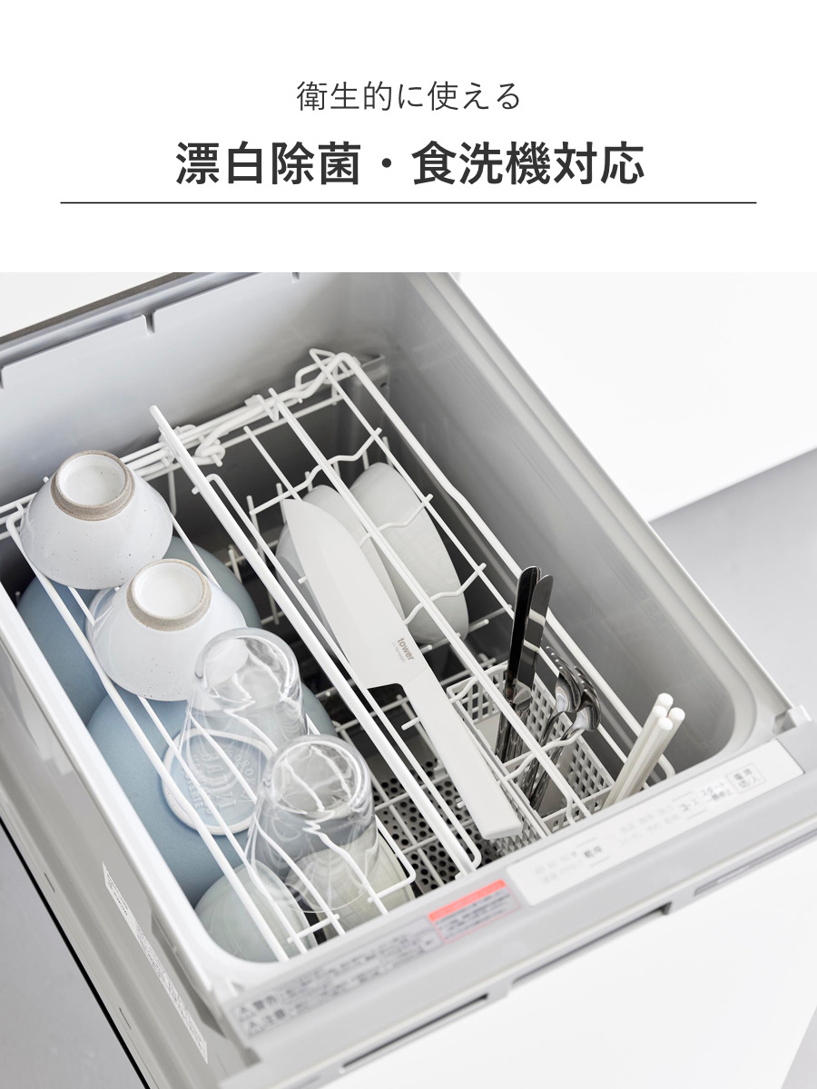 台所用漂白剤での浸け置きや除菌が可能で、食洗機にも対応しています。毎日清潔に使える衛生的なナイフです。