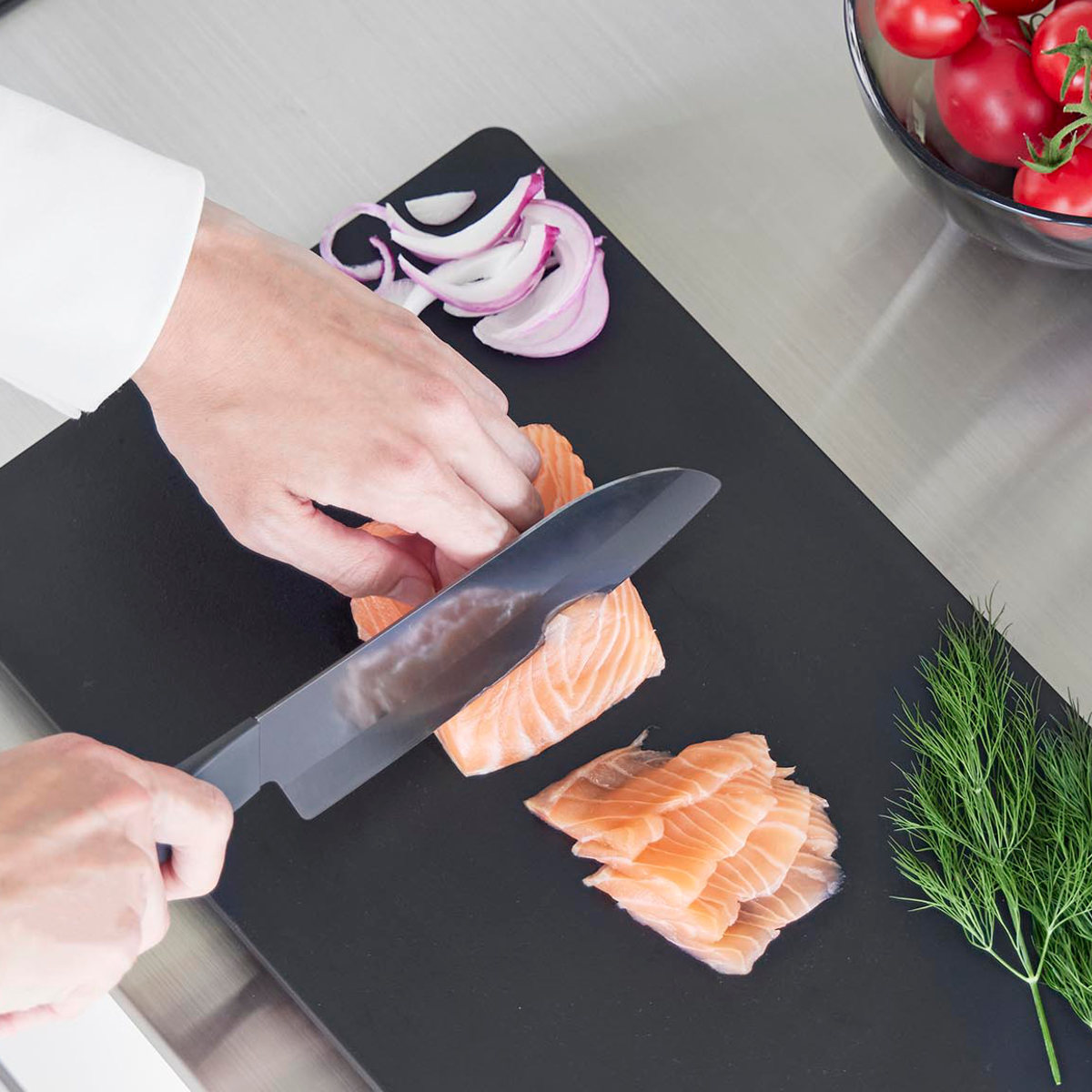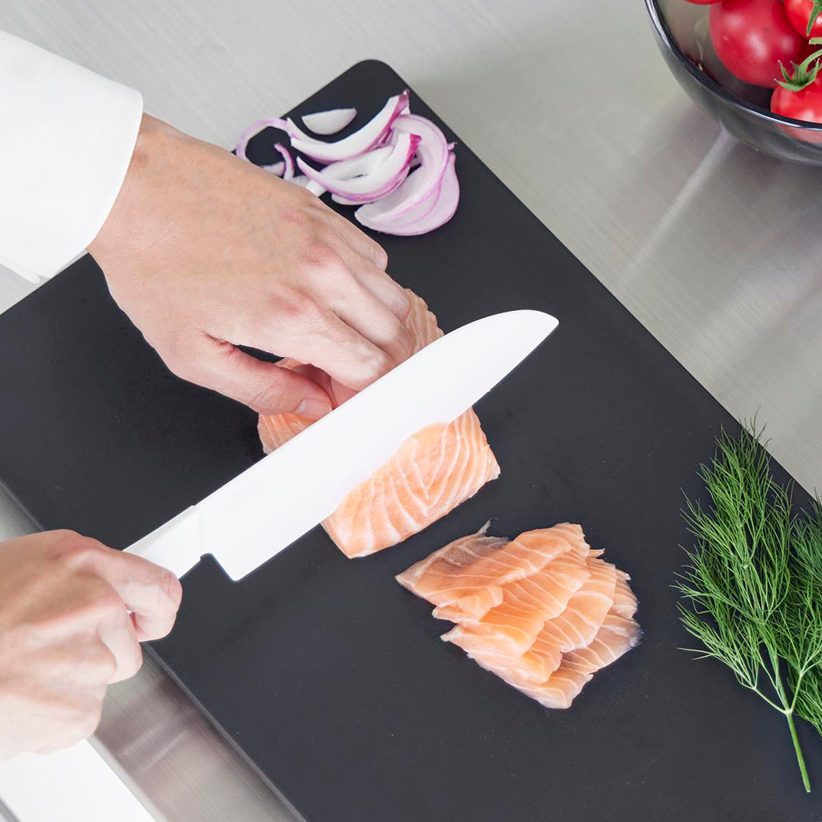 繊細な食材も軽く切れる、滑らかな切れ味です。手に馴染む握りやすいハンドルで、安定した使い心地を実現しました。