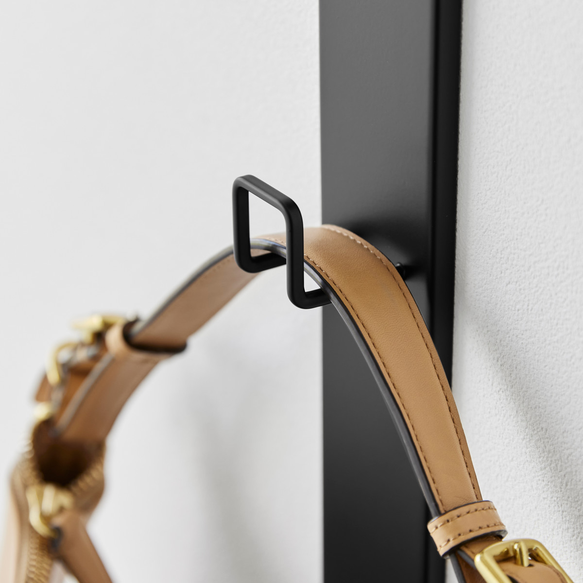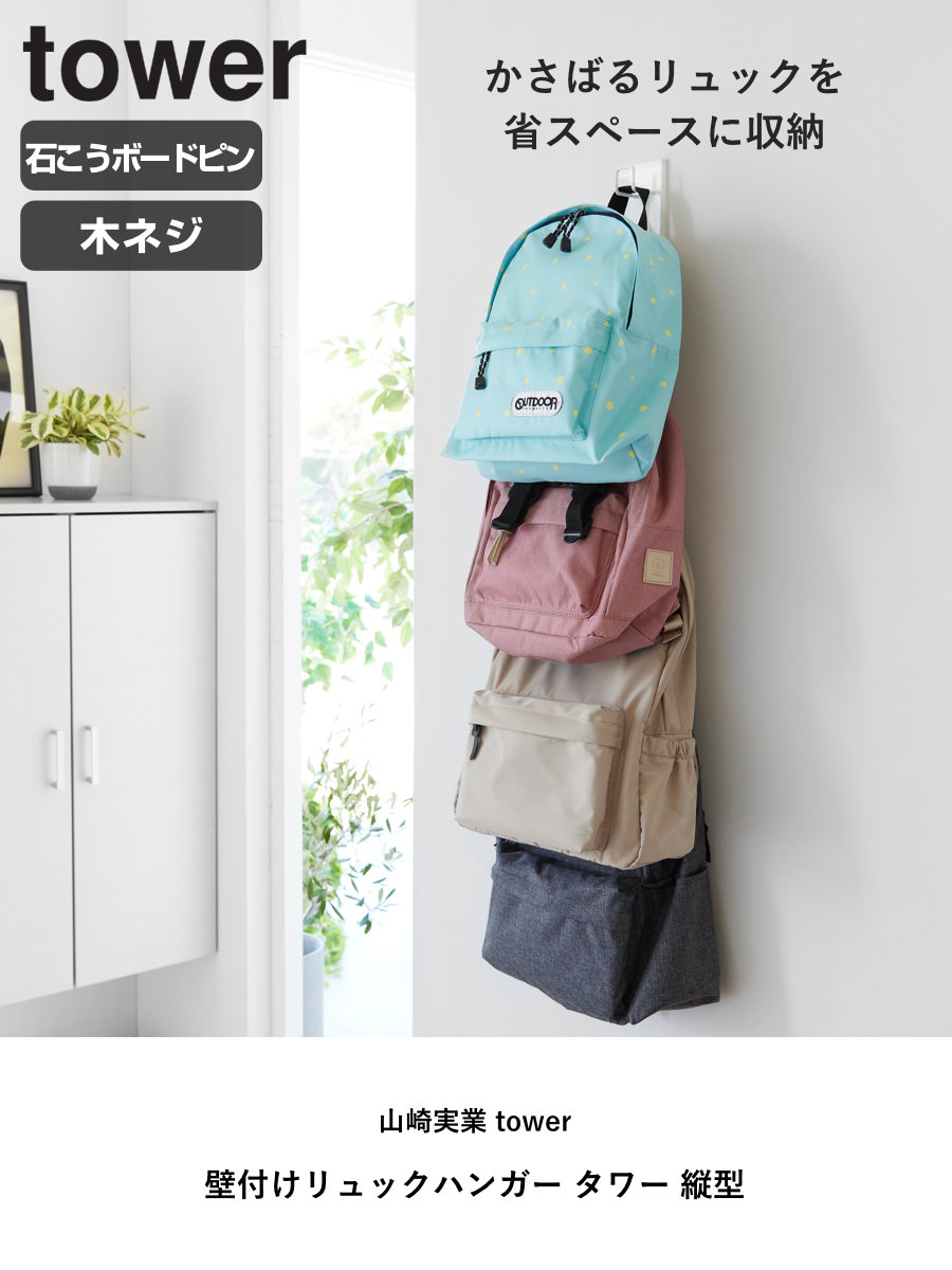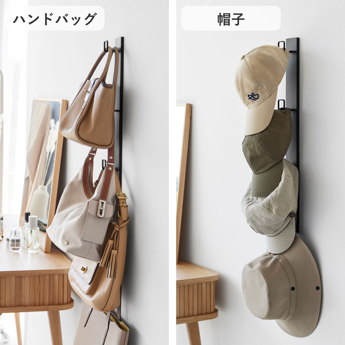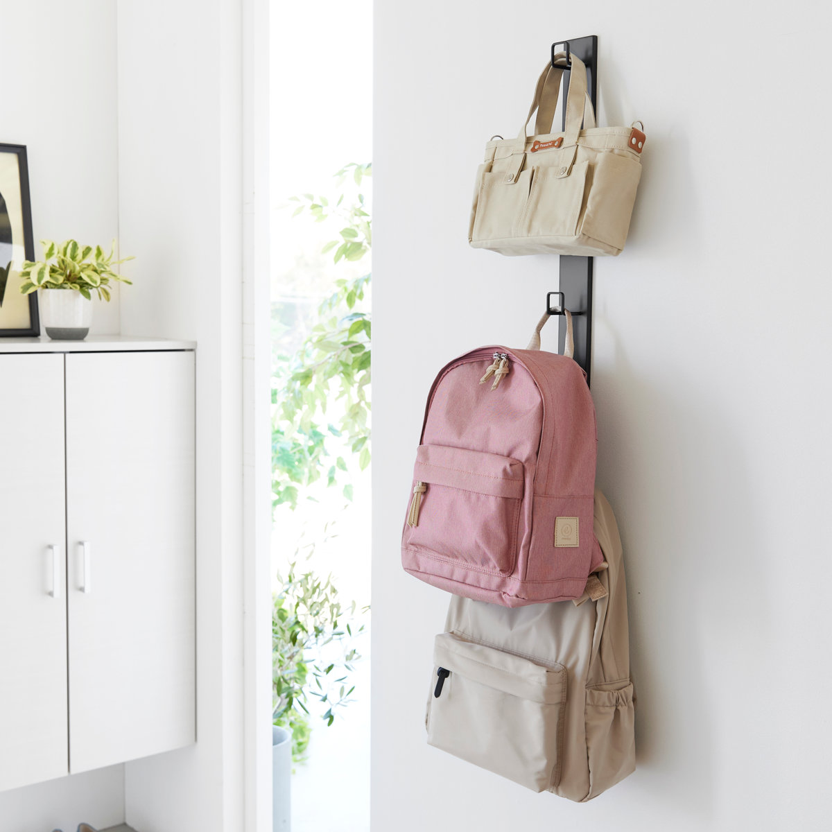 縦型の壁付けハンガーです。収納に困りがちなリュックなどを縦に重ねて掛けられ、省スペースに収納できます。