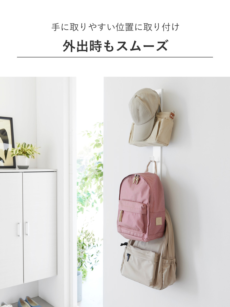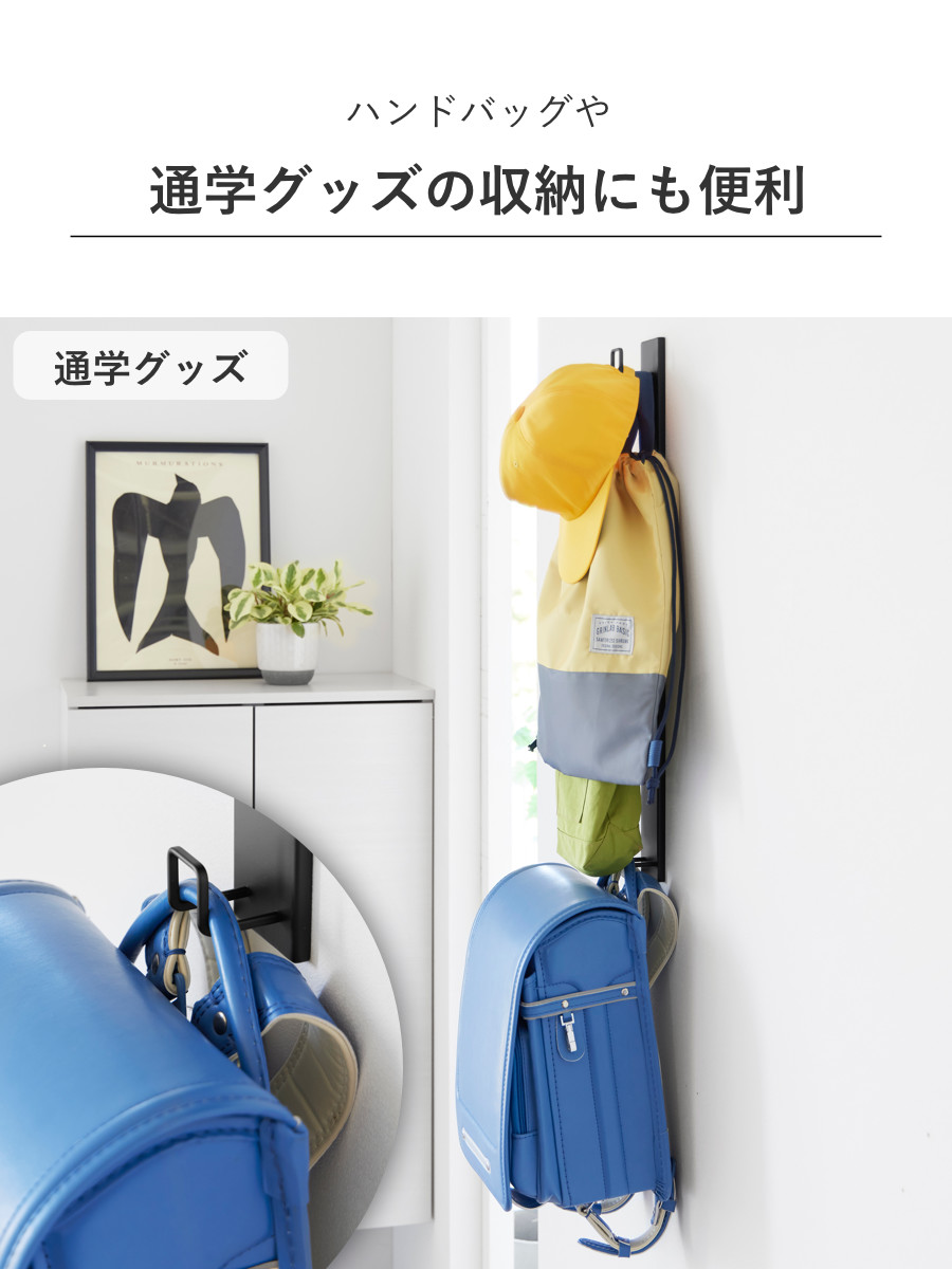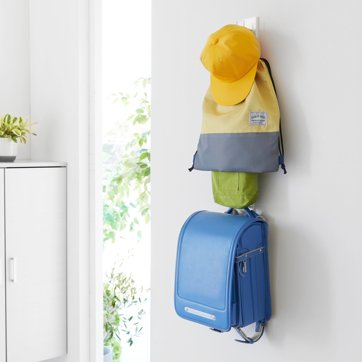 ハンドバッグや帽子、ランドセルの持ち手部分を引っ掛けて、通学グッズをまとめて収納するのもおすすめです。