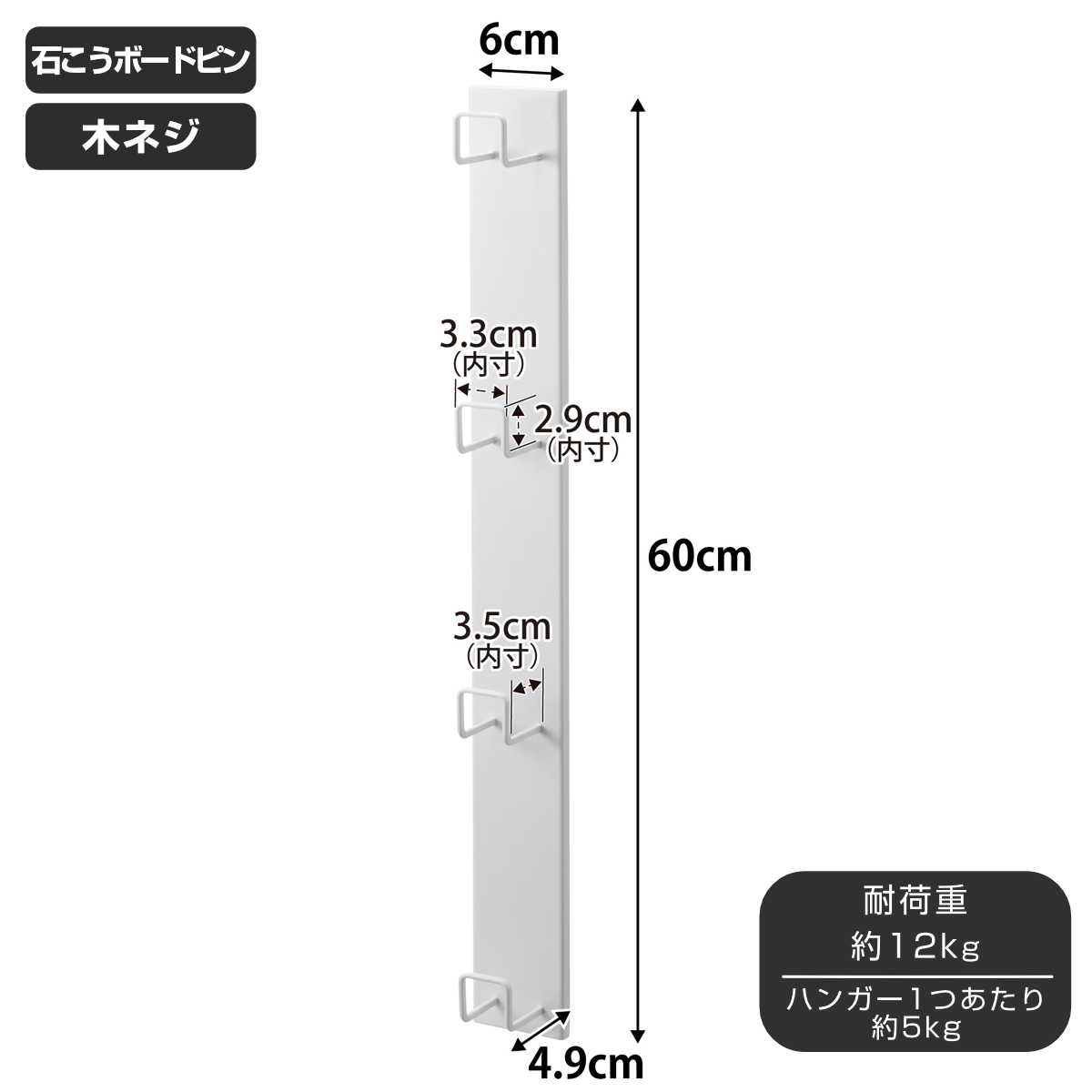 | 耐荷重 | 12kg(ハンガー部1つあたり:5kg)(静止荷重) |