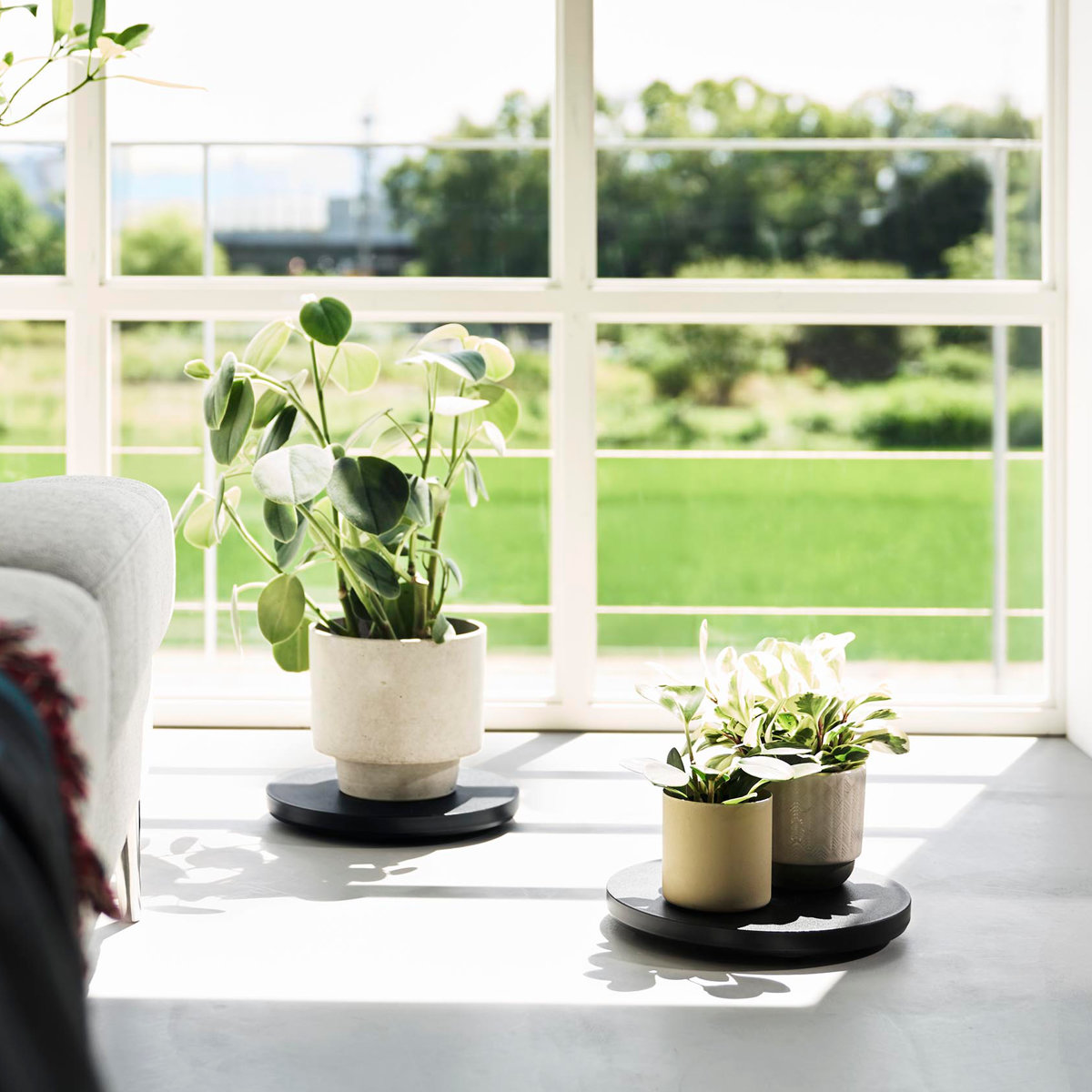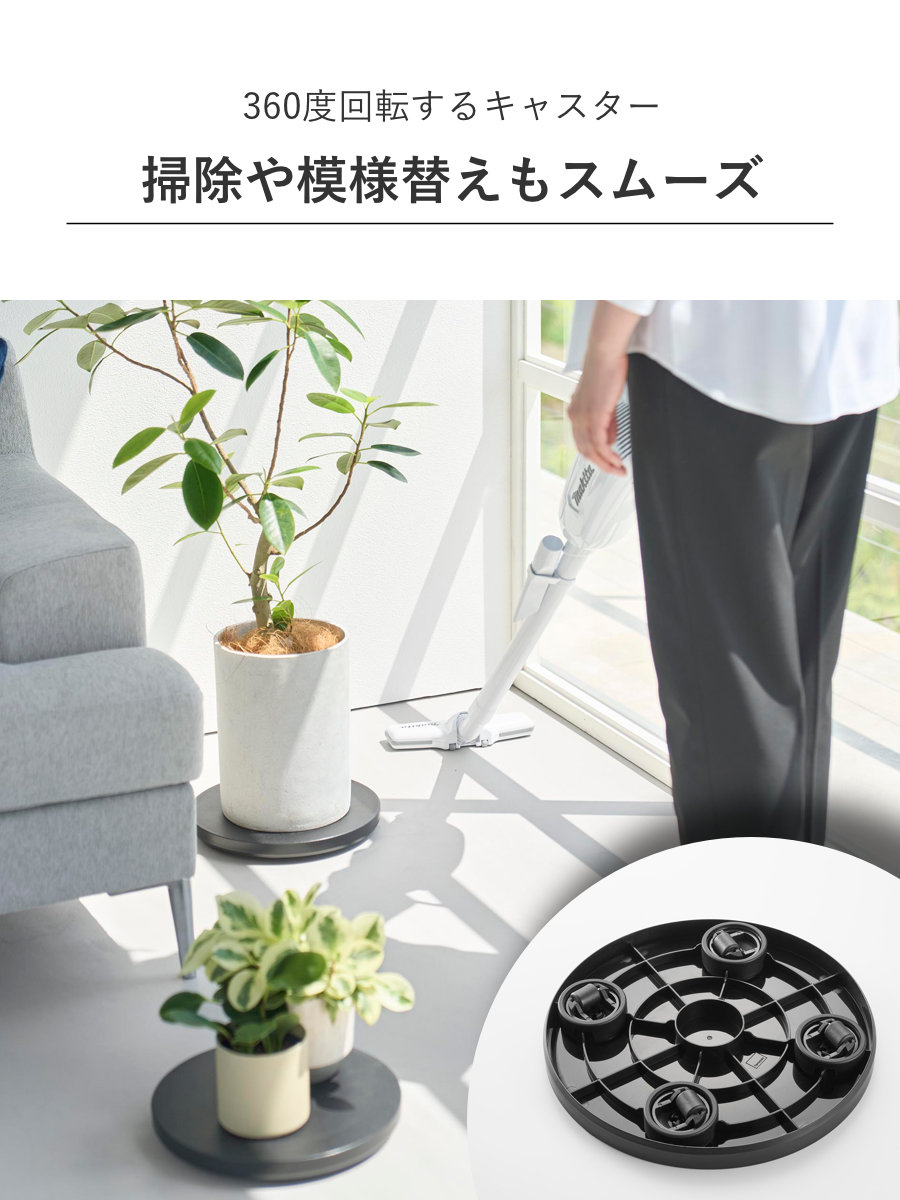 薄型キャスターは360度回転するので、重い鉢植えの観葉植物や家電もスムーズに移動可能。掃除の際のちょっとした移動や、模様替えのときにも手軽に動かすことができます。