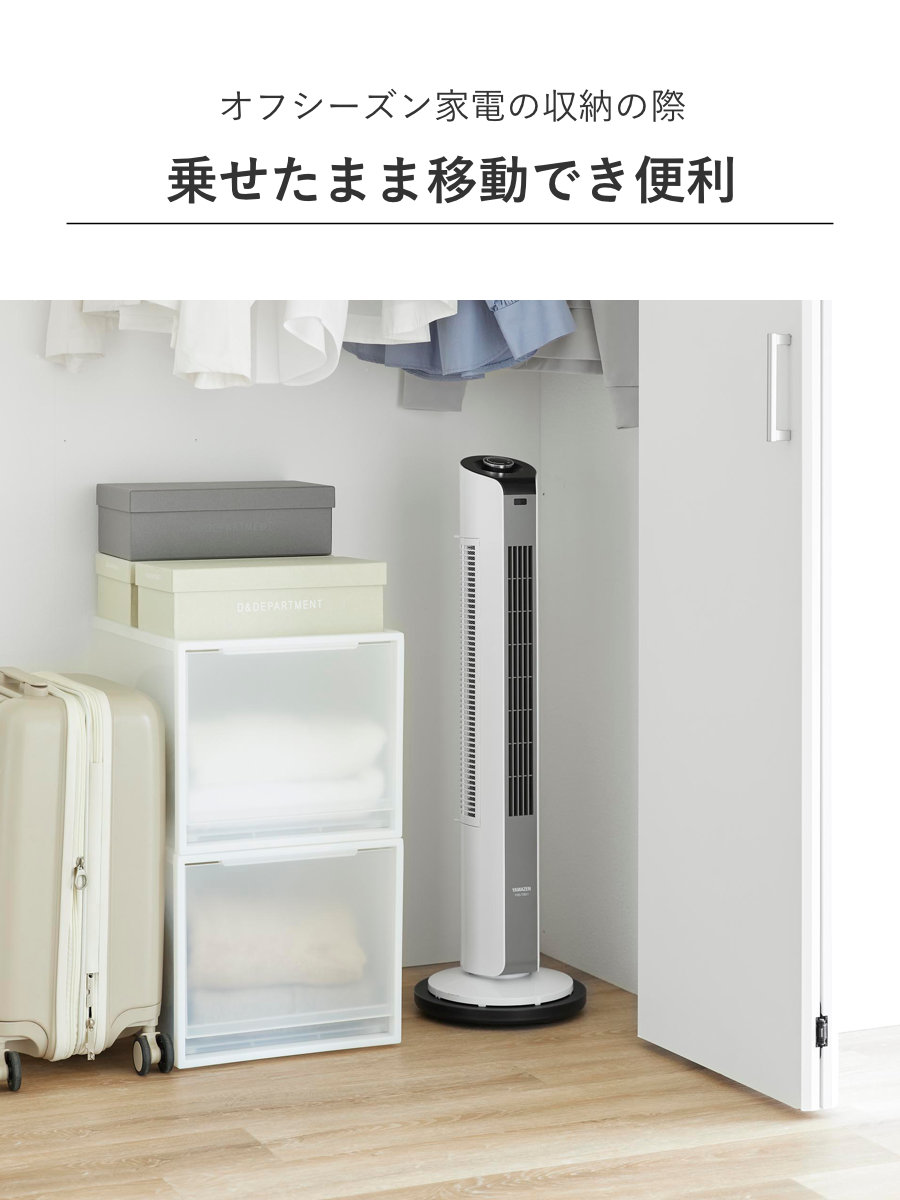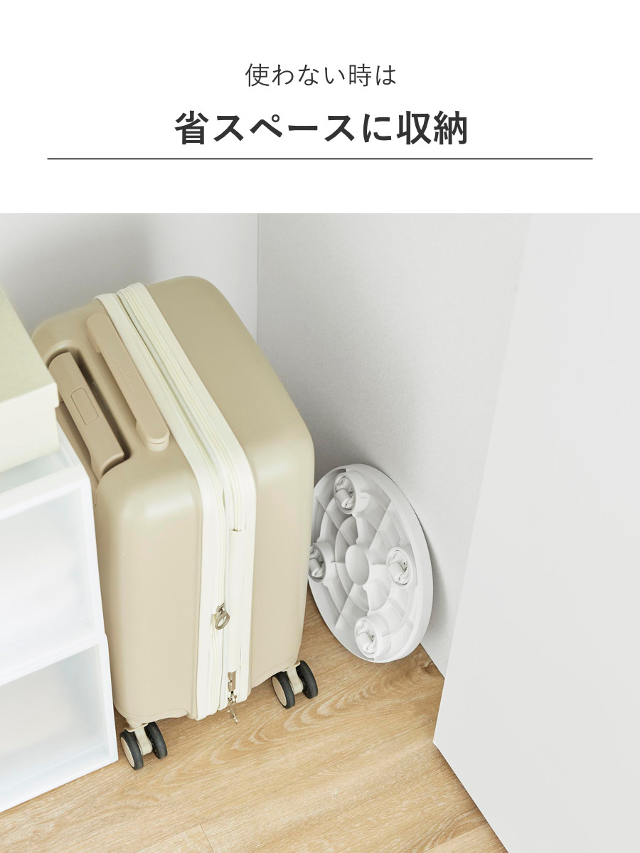 オフシーズンの家電をクローゼットや収納スペースへ移動する際にも便利。台車に乗せたまま移動できるので、重たい家電の出し入れもスムーズに行えます。