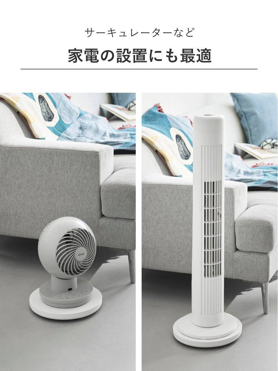 直径26cmのラウンド形状で、サーキュレーターやタワー型ファン、空気清浄機などの設置にもぴったりです。