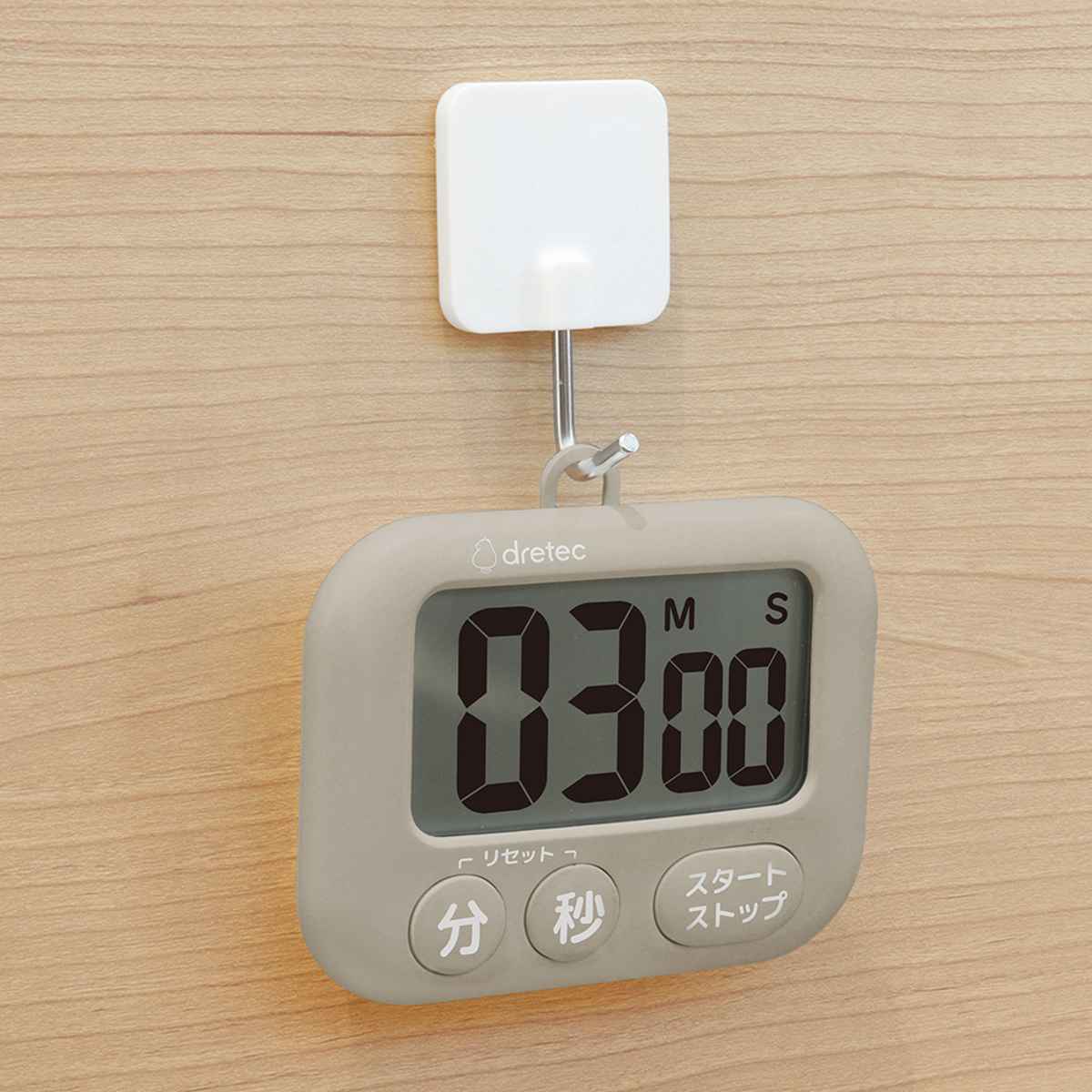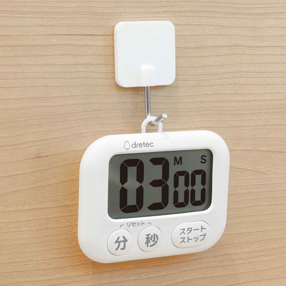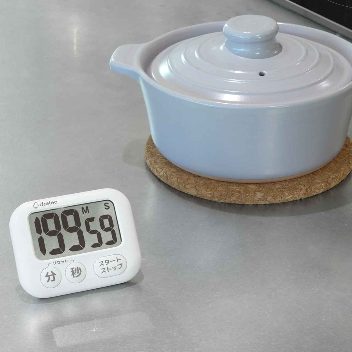 カウントアップ・カウントダウン・リピート機能を備えた、シンプルながら多機能なキッチンタイマーです。大きな数字表示で、時間がはっきり見えます。ボタンも大きいので押しやすく、直感的な操作で簡単に使えます。