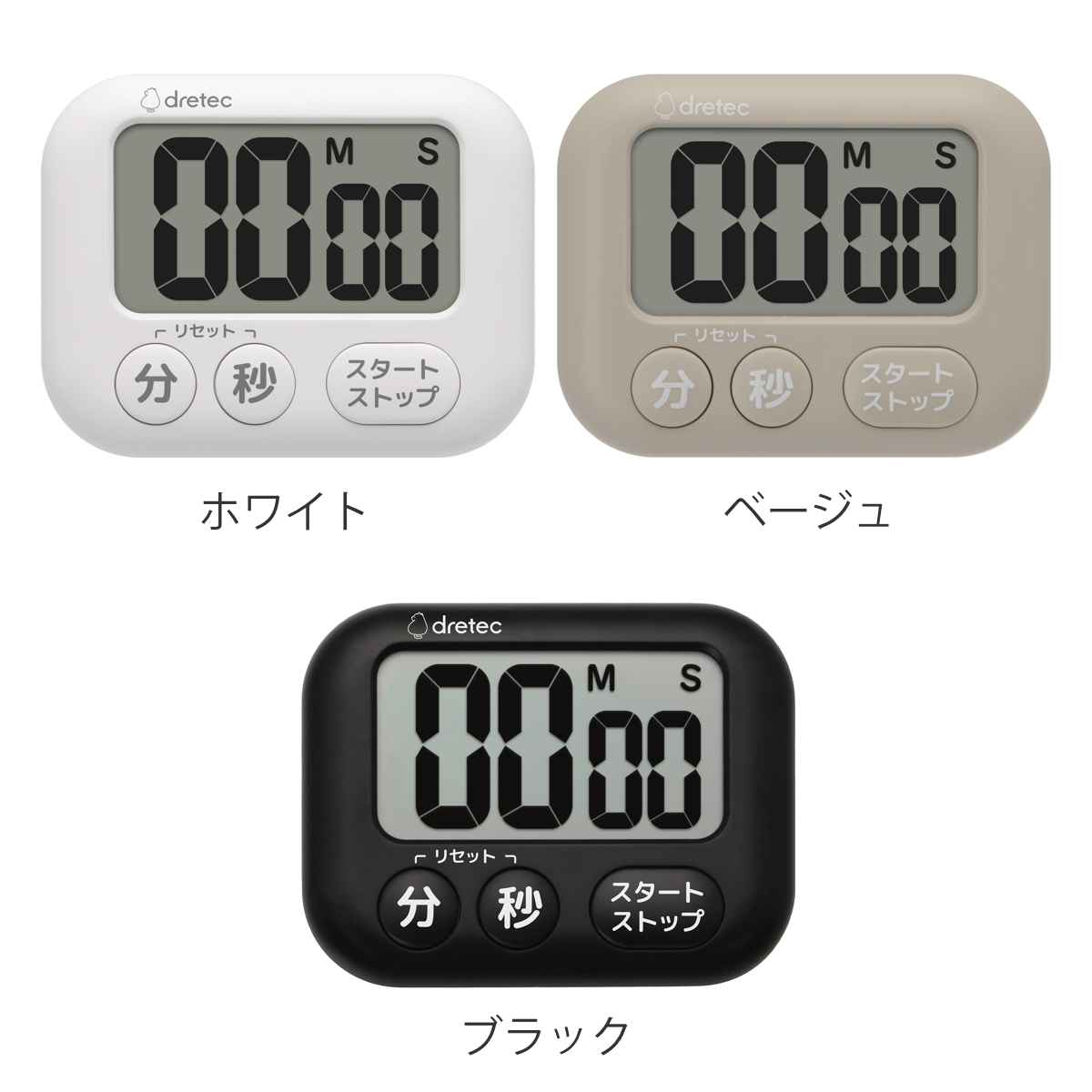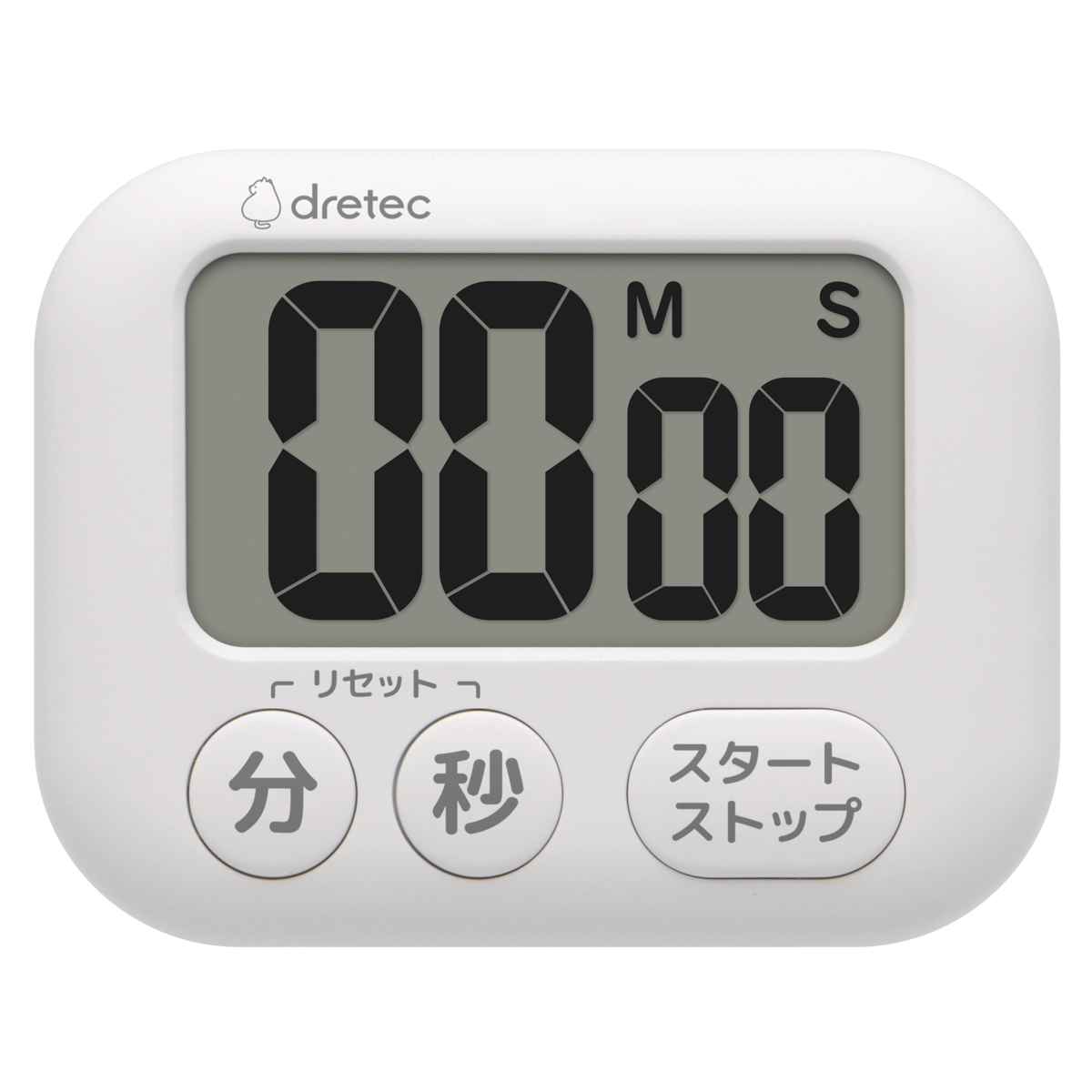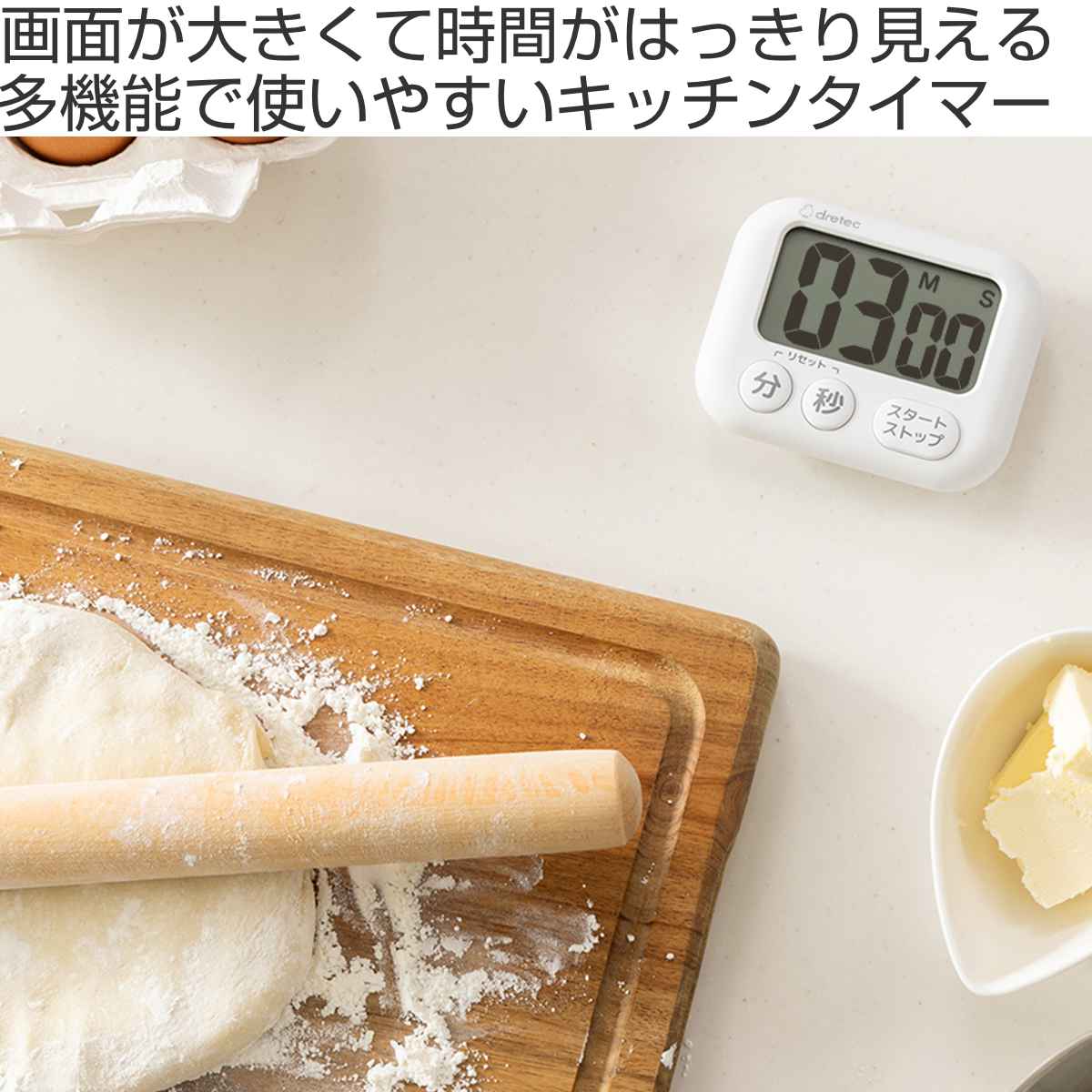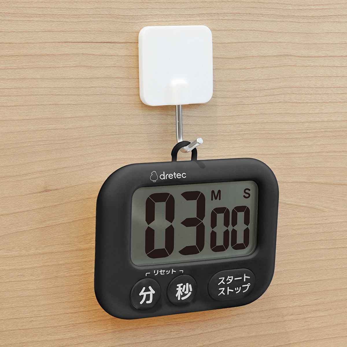 カウントアップ・カウントダウン・リピート機能を備えた、シンプルながら多機能なキッチンタイマーです。大きな数字表示で、時間がはっきり見えます。ボタンも大きいので押しやすく、直感的な操作で簡単に使えます。