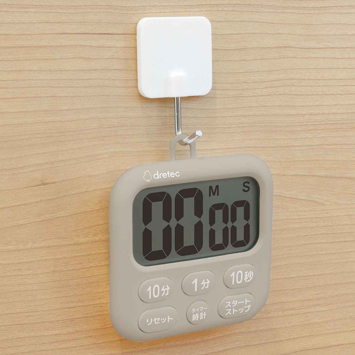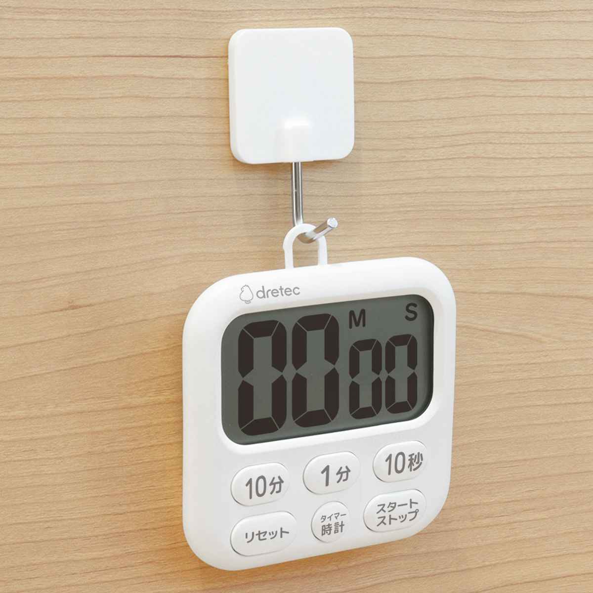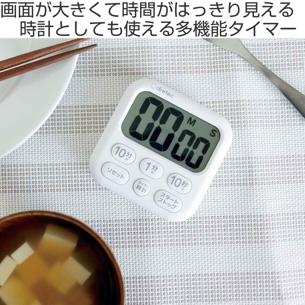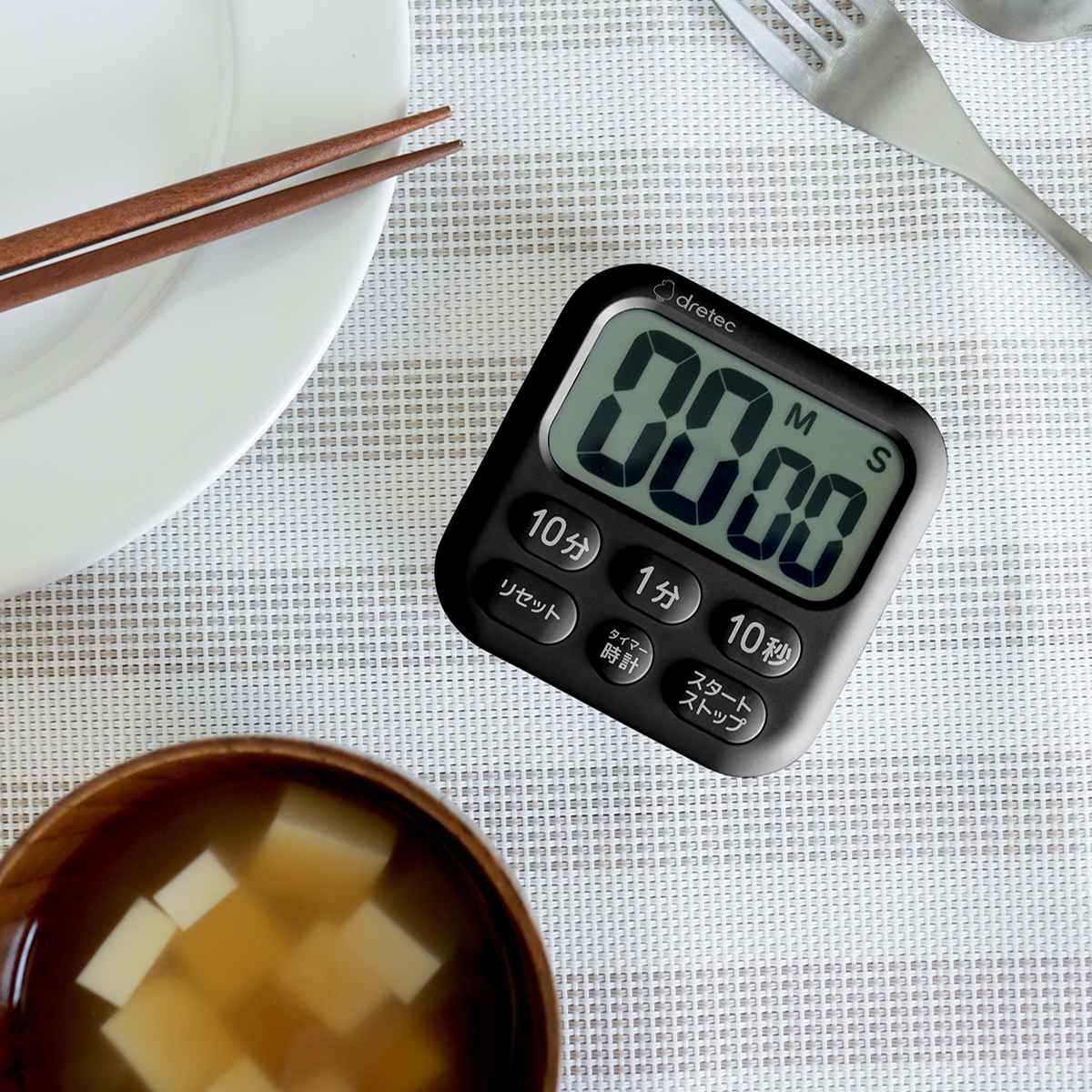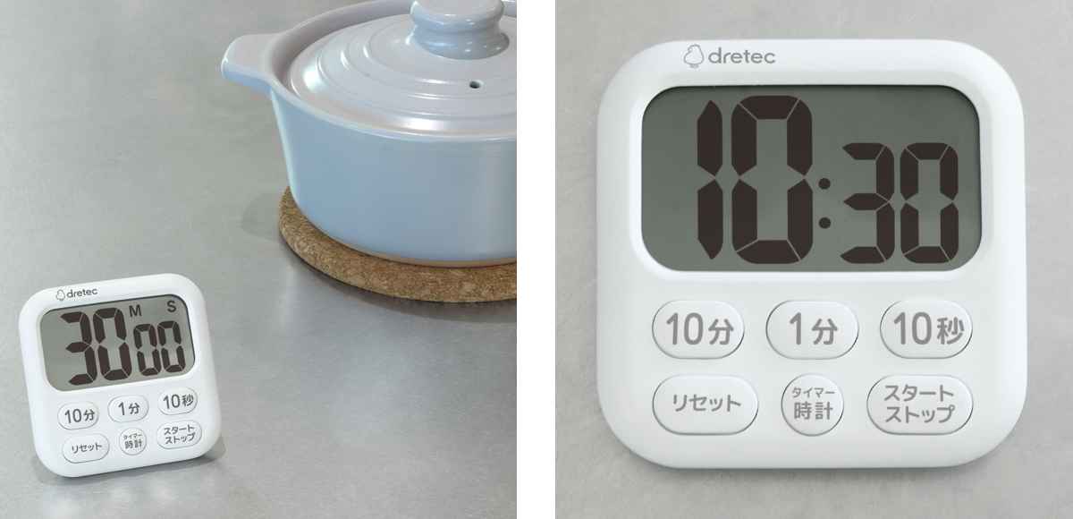 カウントアップ・カウントダウン・リピート機能を備えた多機能キッチンタイマーです。大きな数字表示で見やすく、ボタンひとつで簡単に切り替えて時計として使うこともできます。