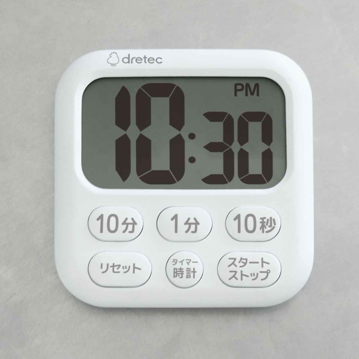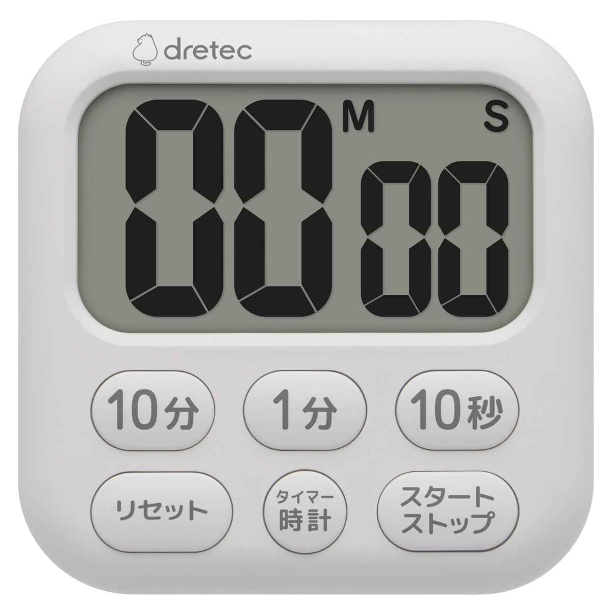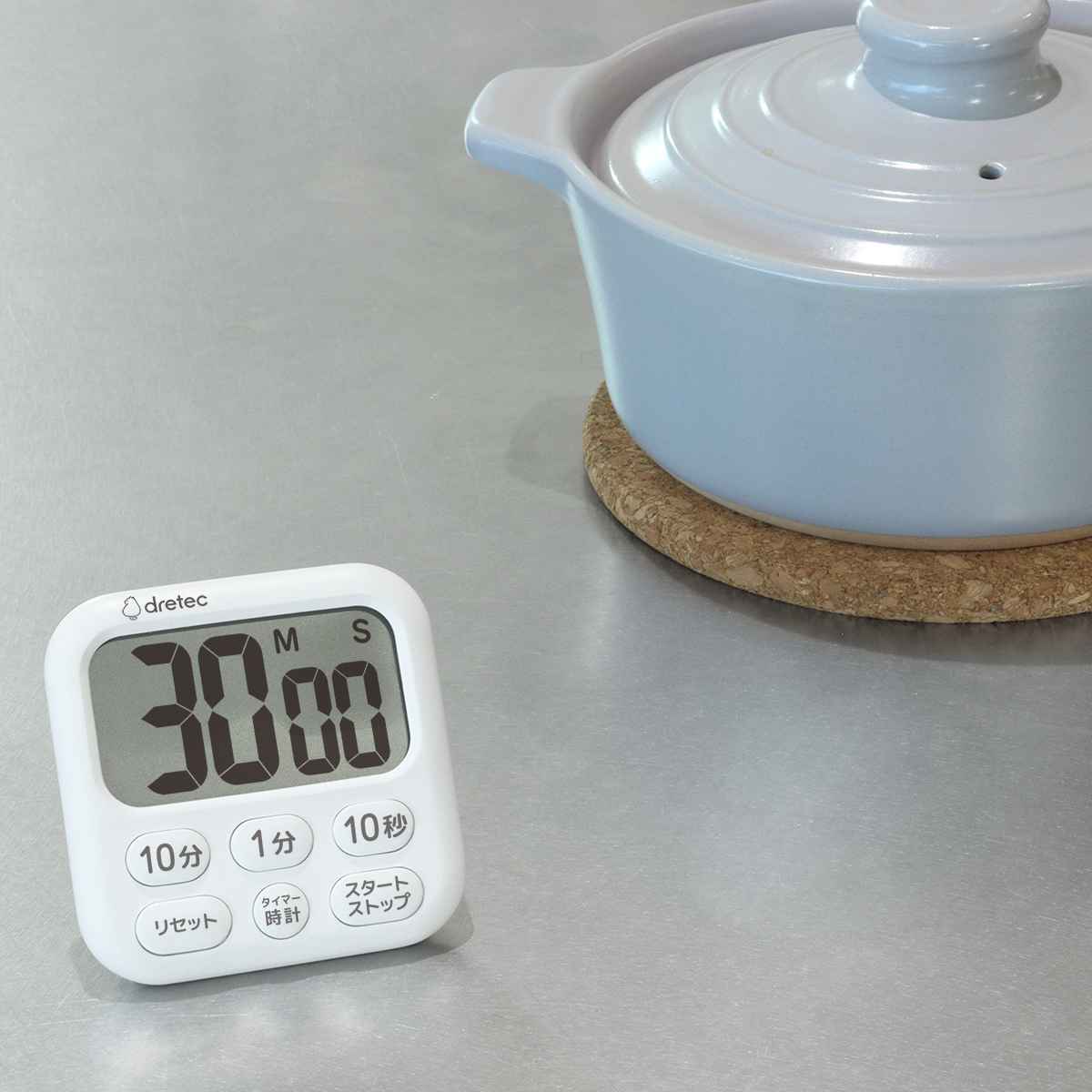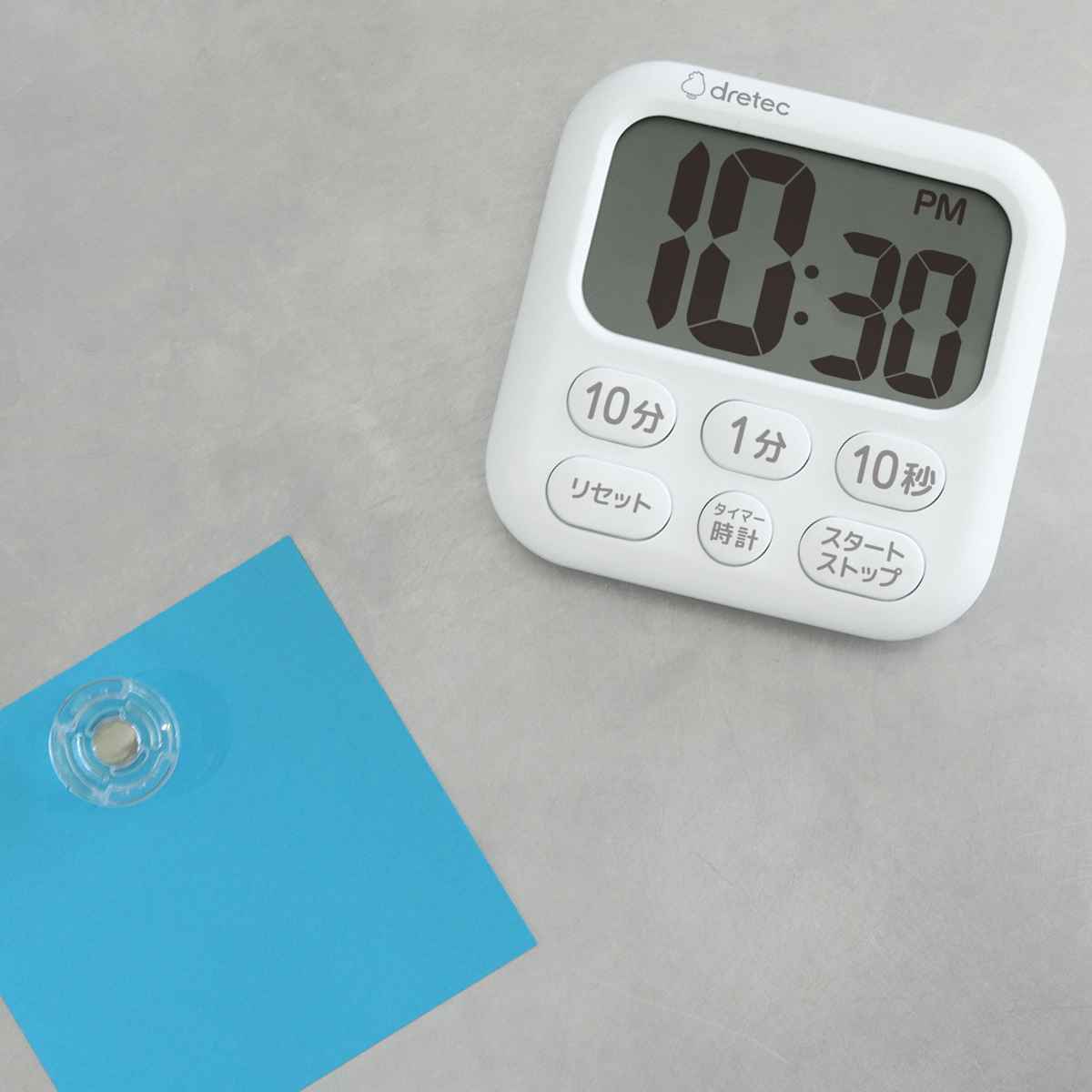カウントアップ・カウントダウン・リピート機能を備えた多機能キッチンタイマーです。大きな数字表示で見やすく、ボタンひとつで簡単に切り替えて時計として使うこともできます。
