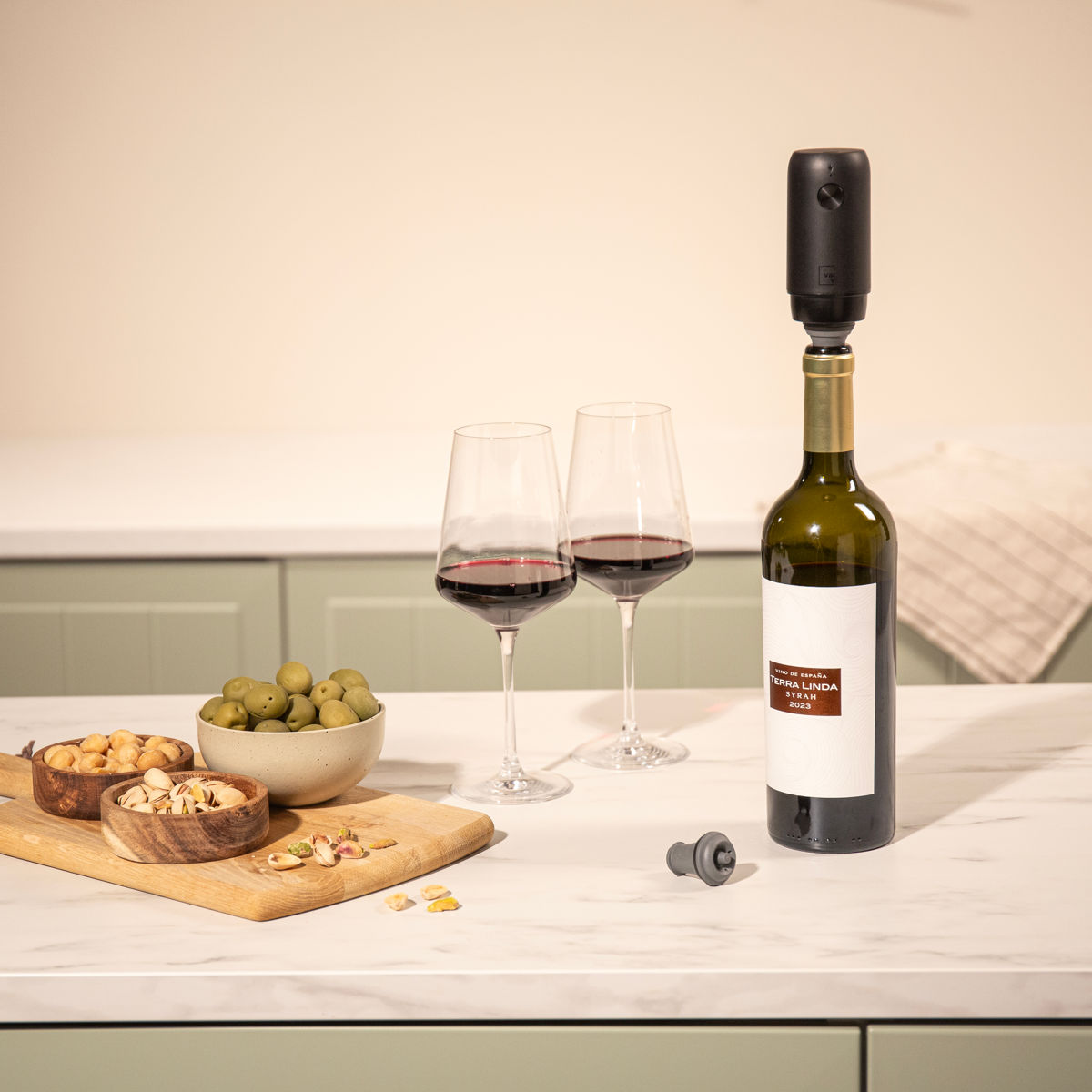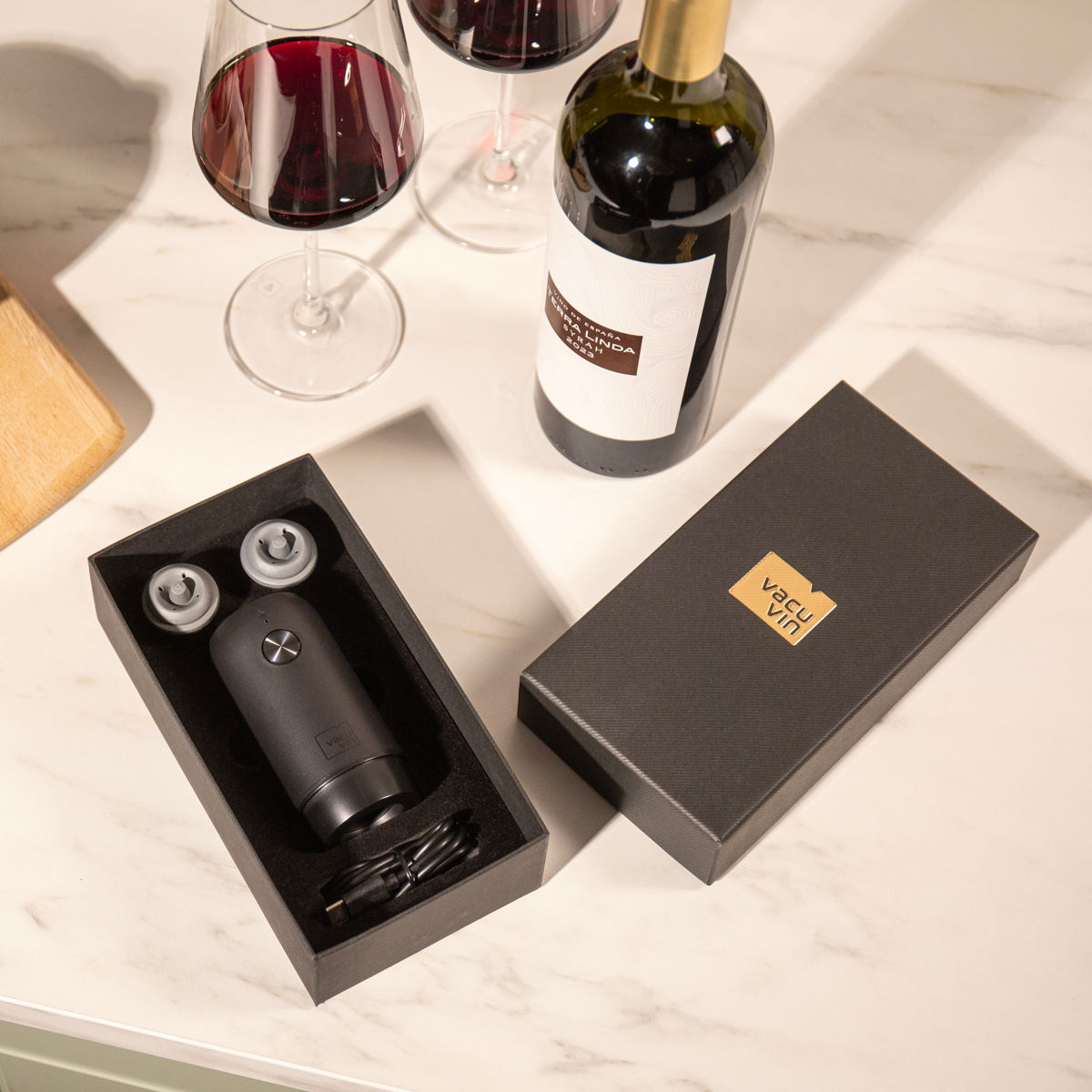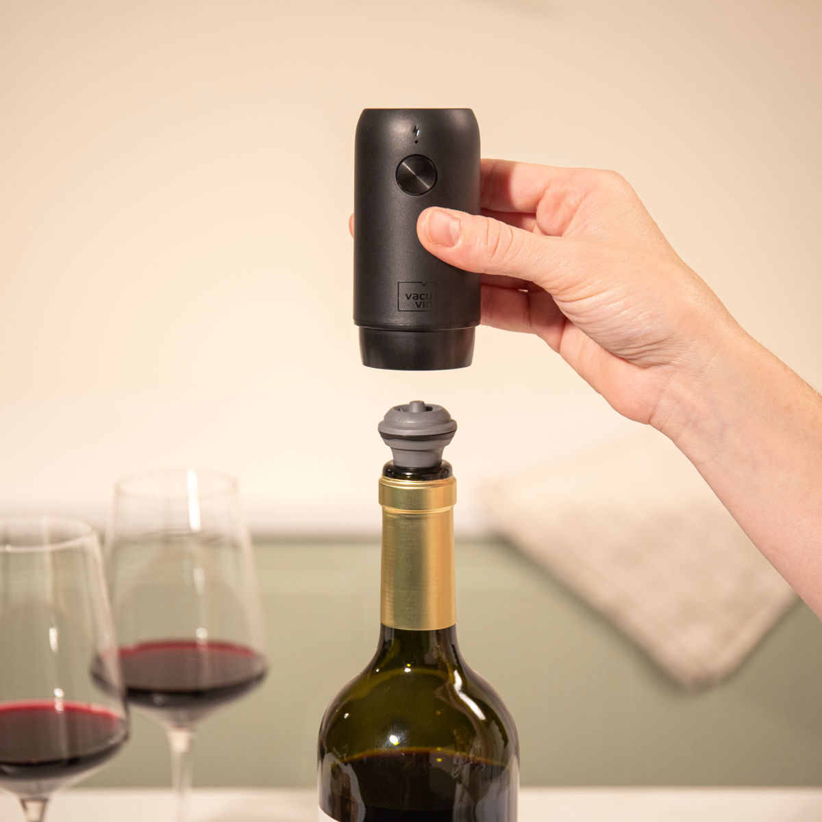 ワンタッチ操作で簡単に素早く空気が抜ける電動ワインセーバー