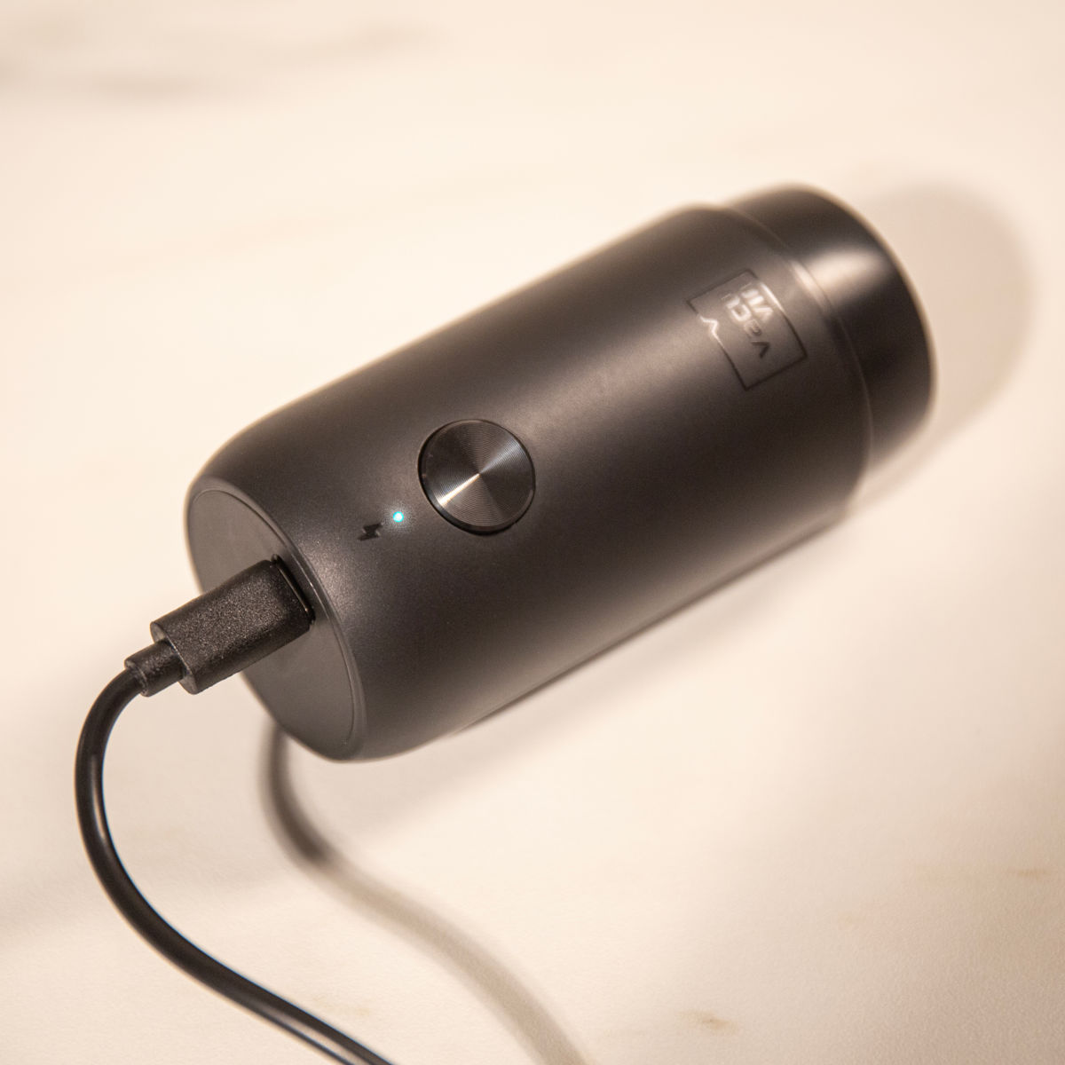 USB充電式で、1回の充電で約40本の脱気ができるので、複数のワインを頻繁に脱気保存する業務用にも最適です。750mlのワインボトルにおよそ半分のワインが入った状態で使用すると、約7秒でスピーディーに脱気が完了します。