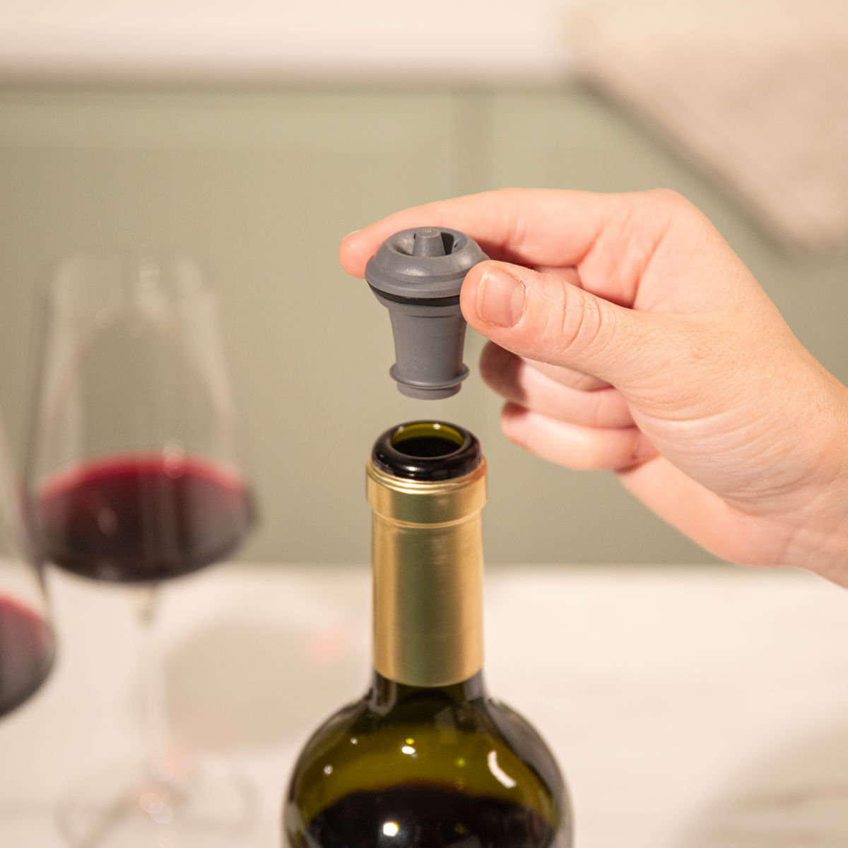 大きなワインボトルや残量の少ないボトル内の空気を素早く抜いて、鮮度を保つ電動式のワインセーバーです。ストッパーをボトルにセットし、本体をかぶせて電源ボタンを押すだけなので、誰でも簡単に空気が抜けます。脱気が終わると自動的に動作が停止するオートオフ機能により、脱気完了がわかりやすく、無駄な電力を消費しません。