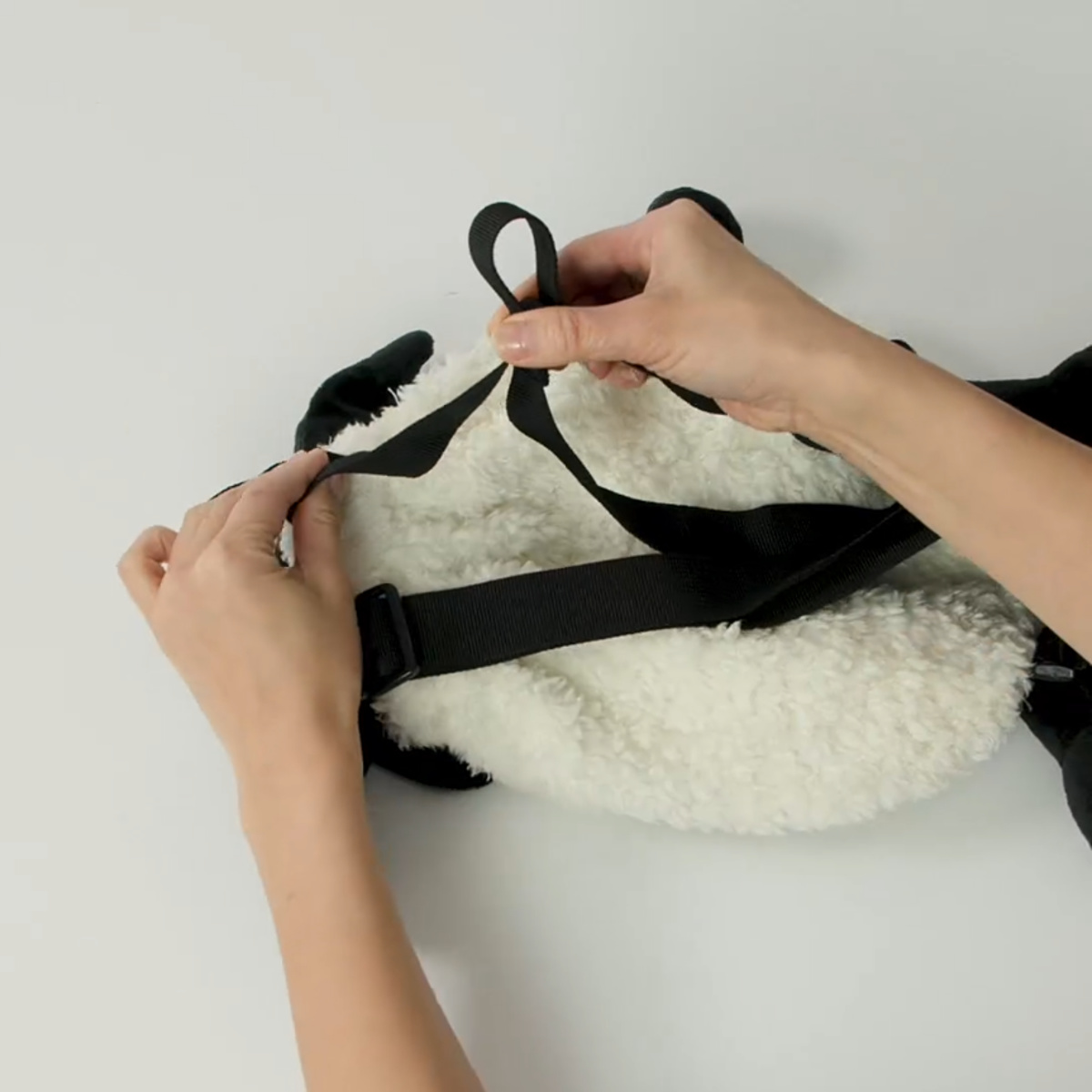 ぬいぐるみの肌触りをそのまま残した、ひつじのショーンシリーズのティミーのリュックサックです。ポケットにはティミーが大好きなテディベアが入っています。
