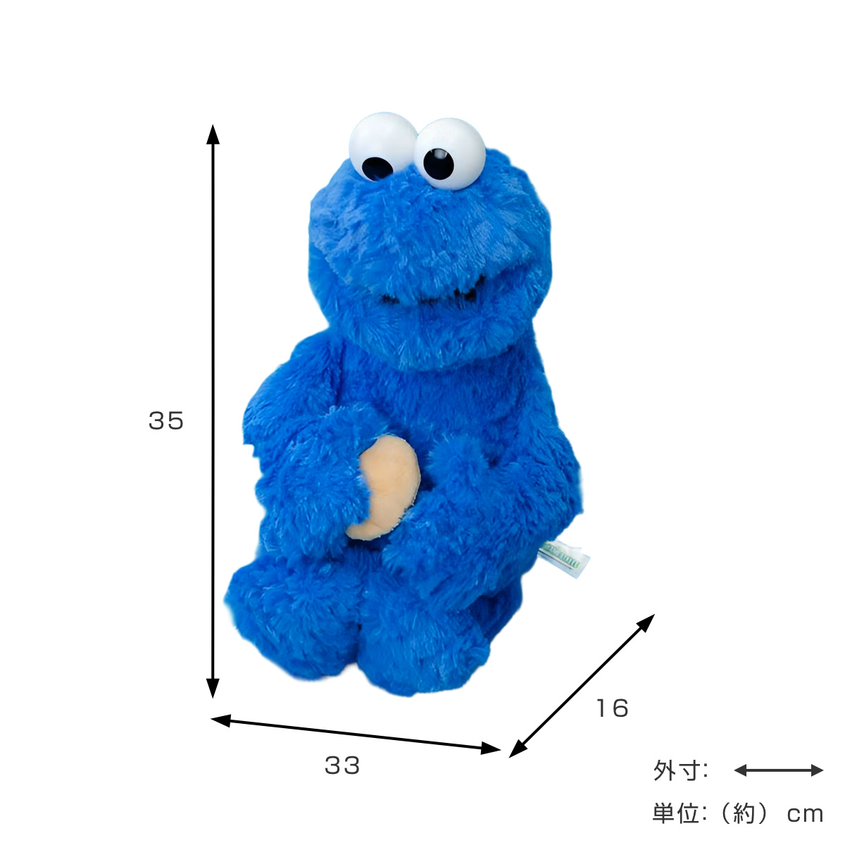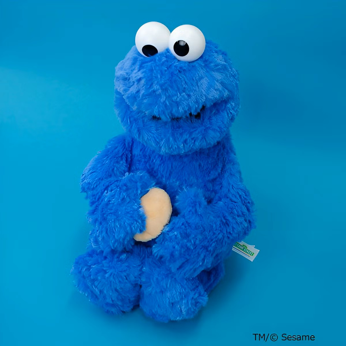 クッキーが大好きな「クッキーモンスター」のぬいぐるみです。特徴的な大きな目とふわふわのブルーのボディが印象的で、キャラクターの魅力をそのまま表現しています。