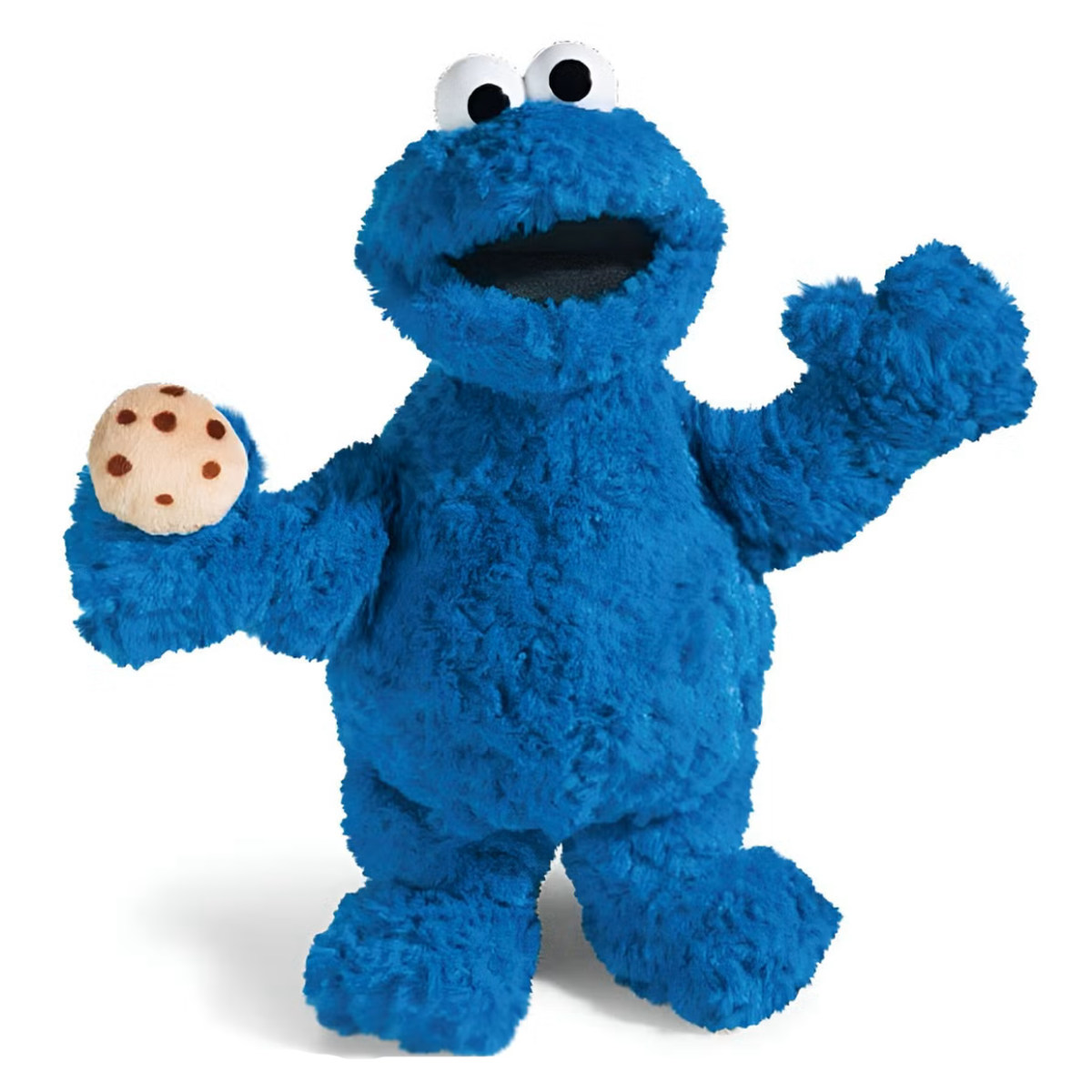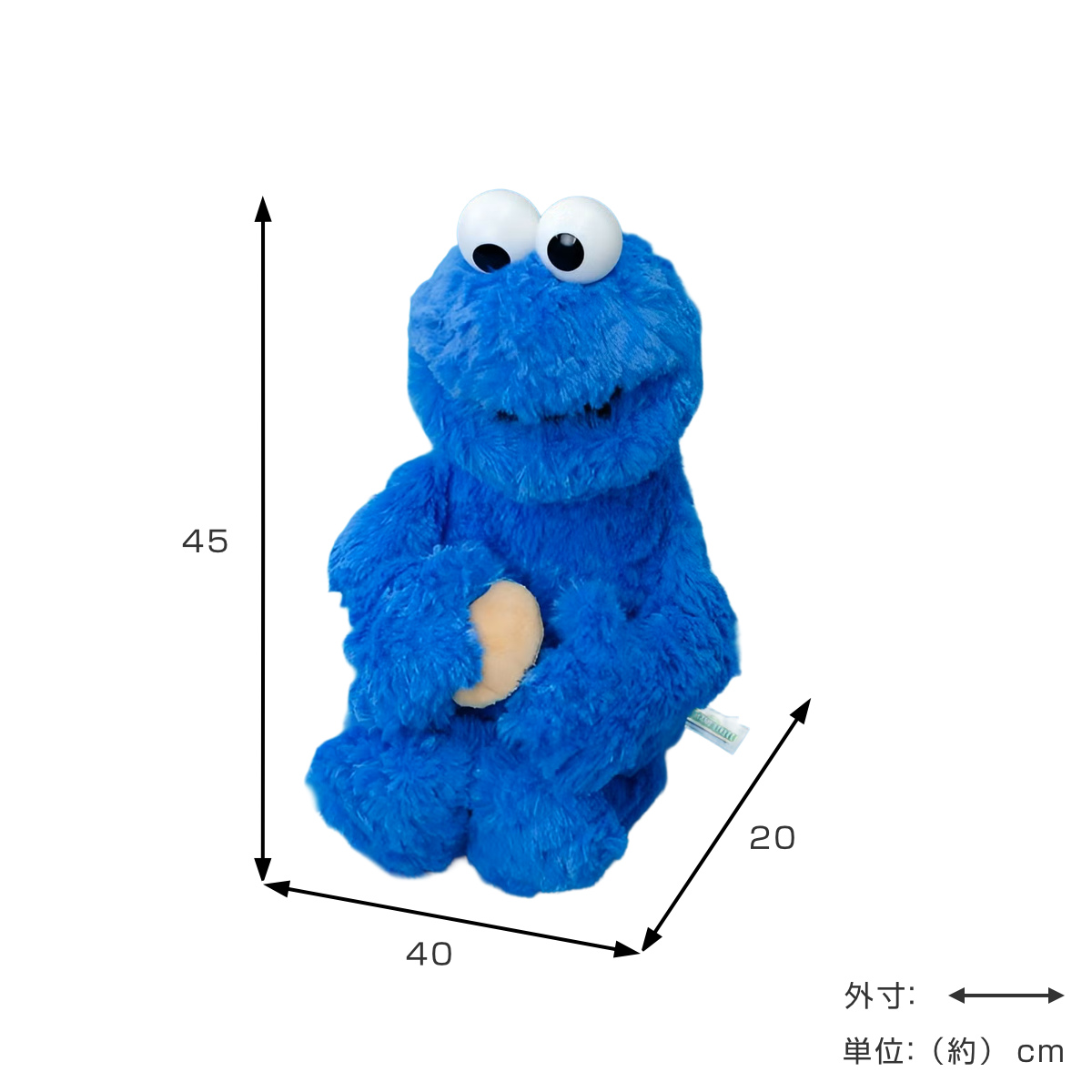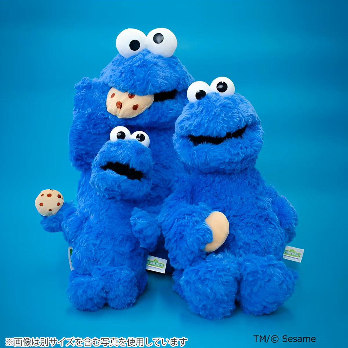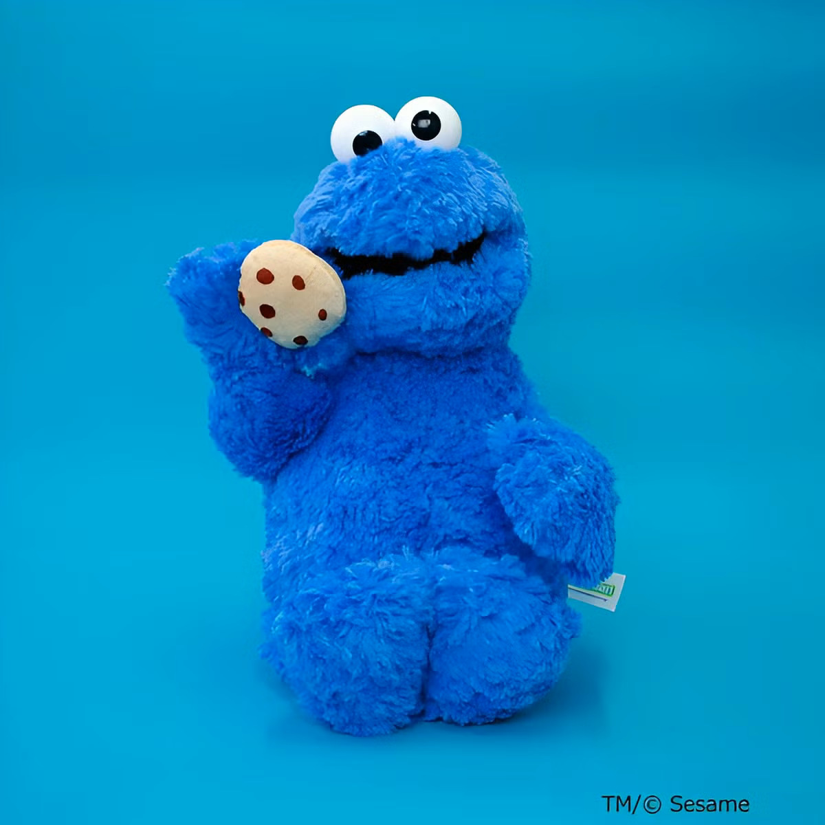 セサミストリートの人気キャラクター「クッキーモンスター」のぬいぐるみです。ブルーのふわふわボディと愛らしい表情が特徴で、キャラクターの魅力をしっかり再現しています。