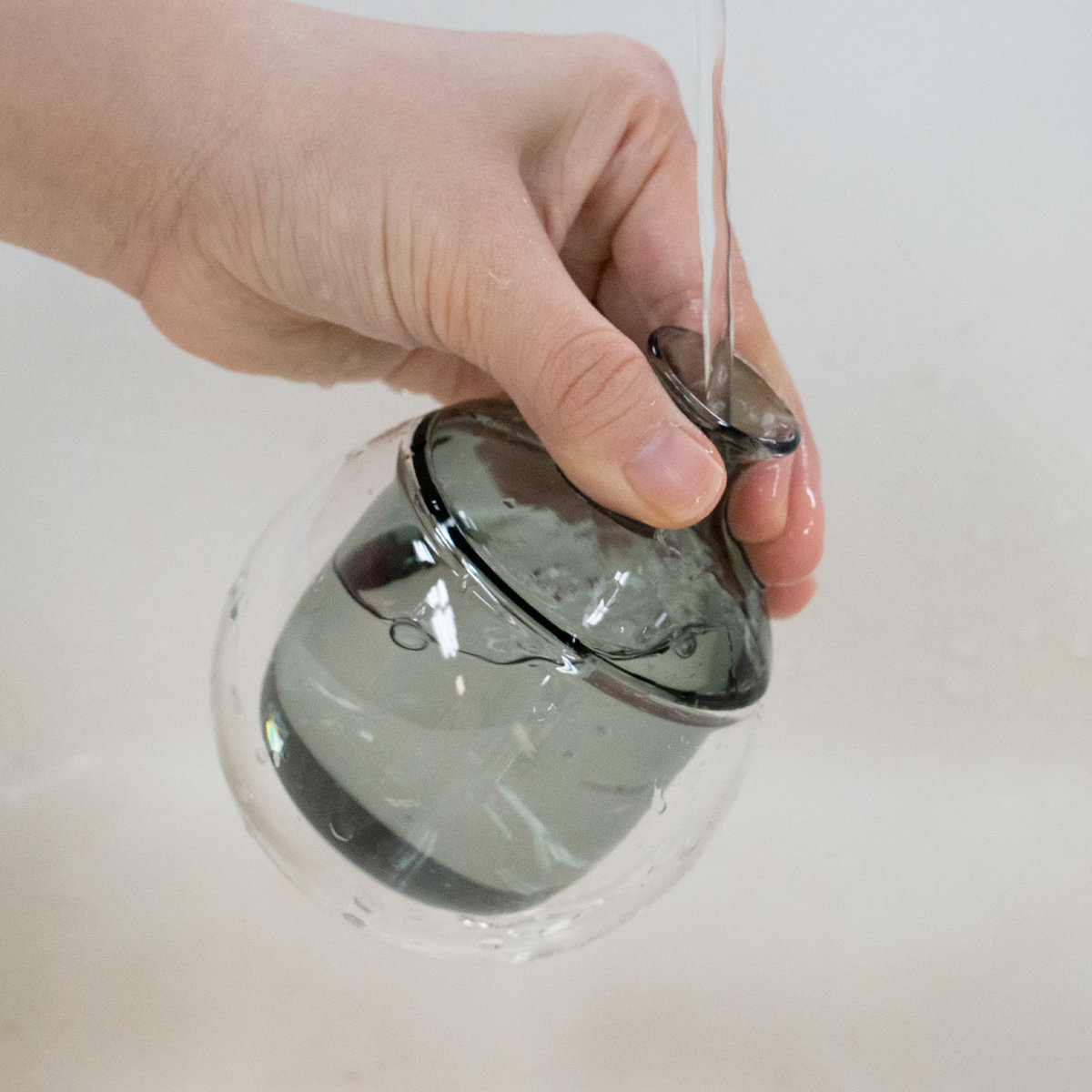 指にフィットして持ちやすいデザインのため、洗う際も安定してしっかり握れます。ガラス素材なので、飲み物のにおいや色移りがしにくく、さっと洗うだけで清潔感をキープ。毎日気持ちよくお使いいただけます。