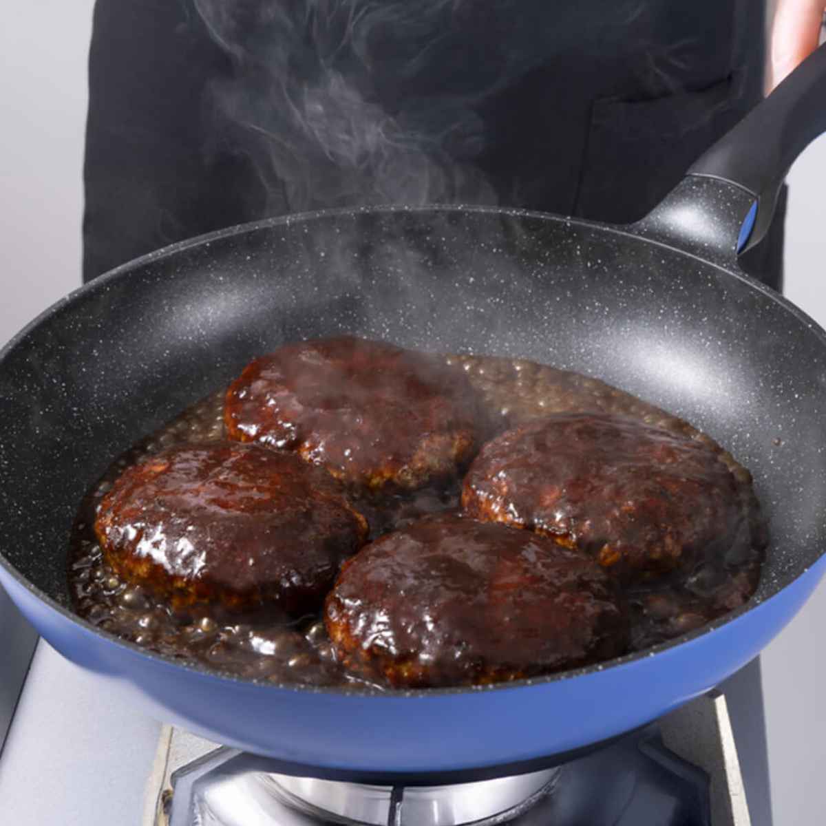 調理面にはマーブルコート加工を施しているため、焦げ付きにくく、少量の油でもヘルシーに調理できます。汚れが落としやすくお手入れも簡単です。