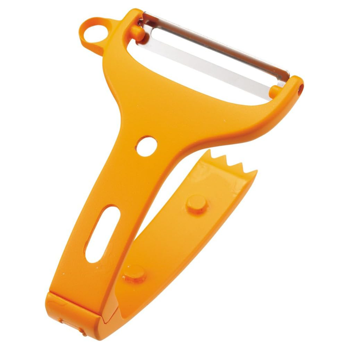 2つに分離できるので使わないときもコンパクトに収納できます。分離した刃側は通常のピーラーとして、すべり止め側はカボチャの種取りとして使えます。