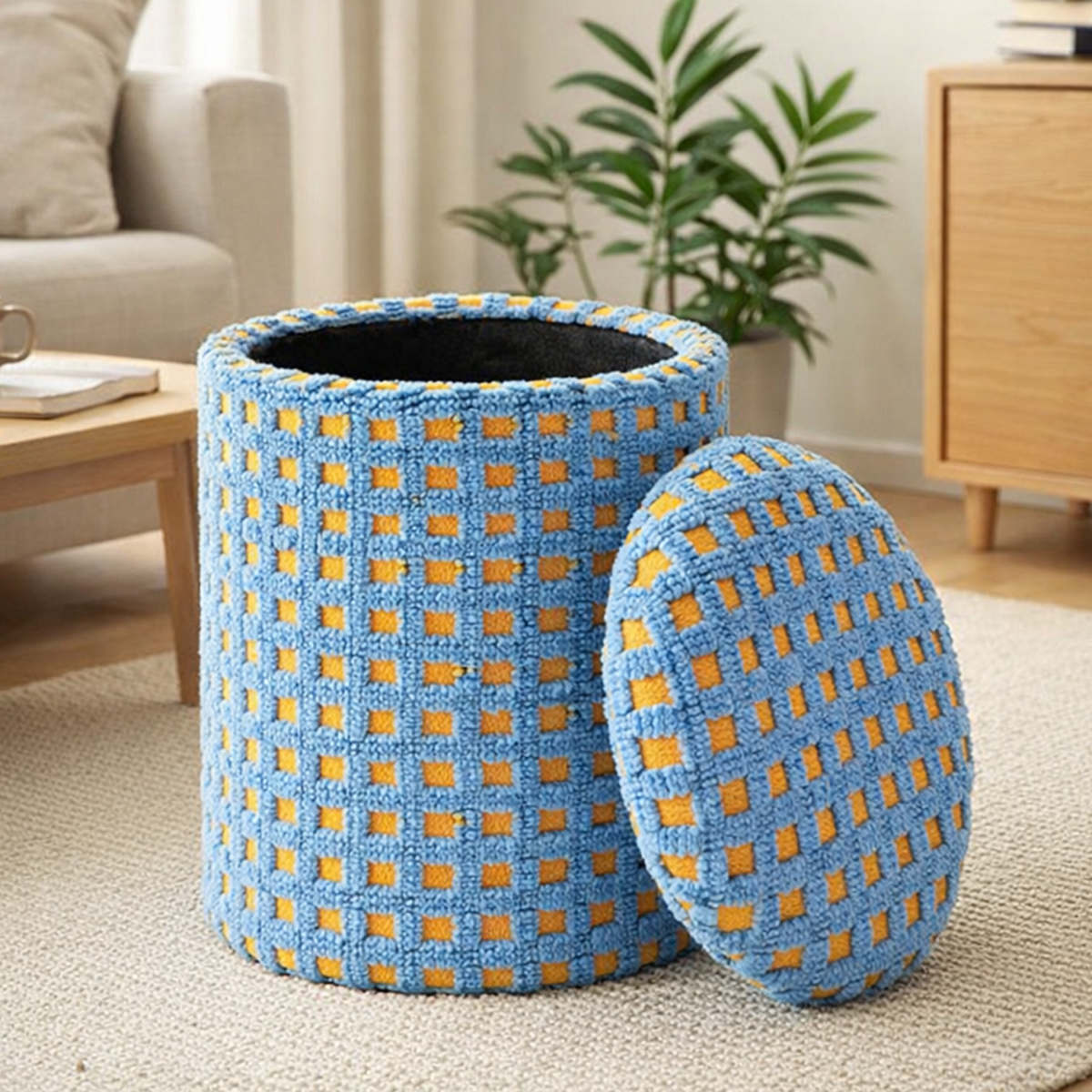 ふわふわの優しい手触りと、ポップな配色が魅力の収納スツール。置くだけで、北欧風のおしゃれな空間に仕上がります。見た目の可愛さだけでなく、収納力と実用性も兼ね備えたアイテムです。
