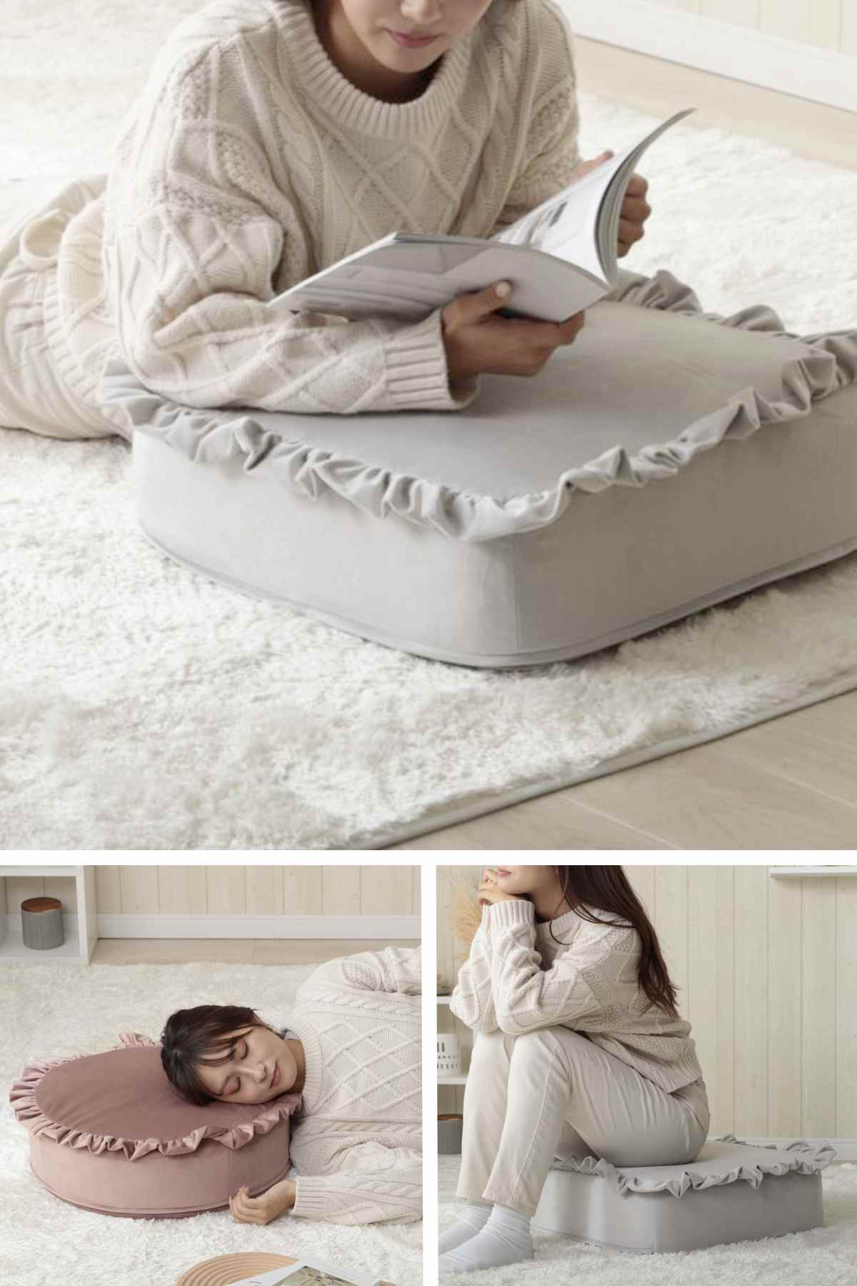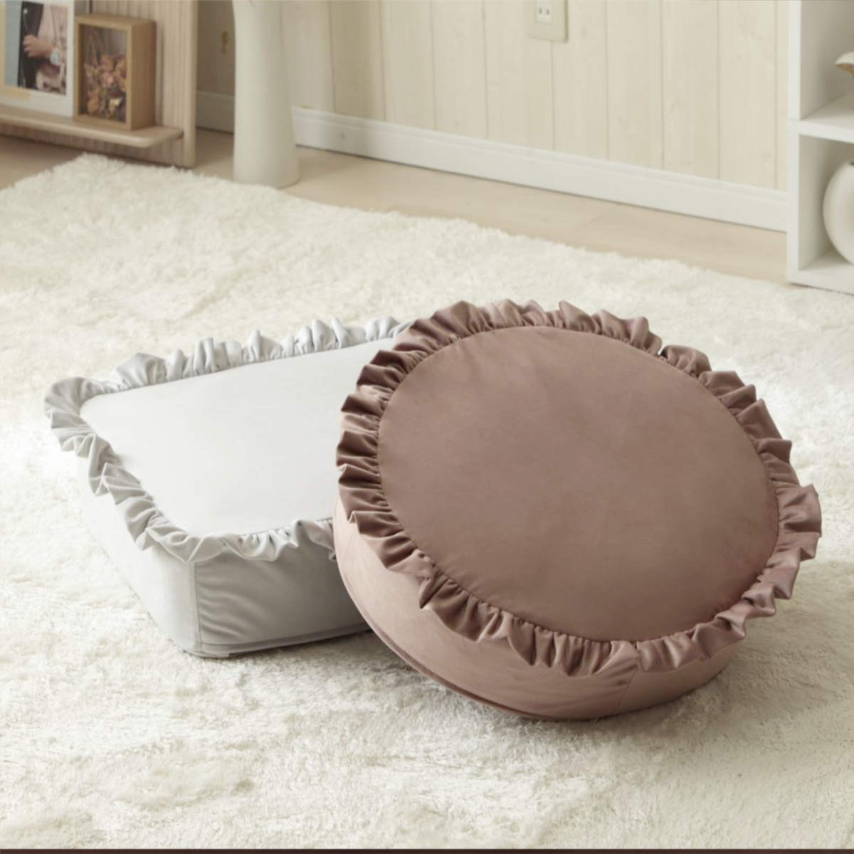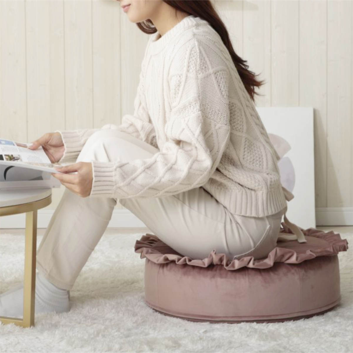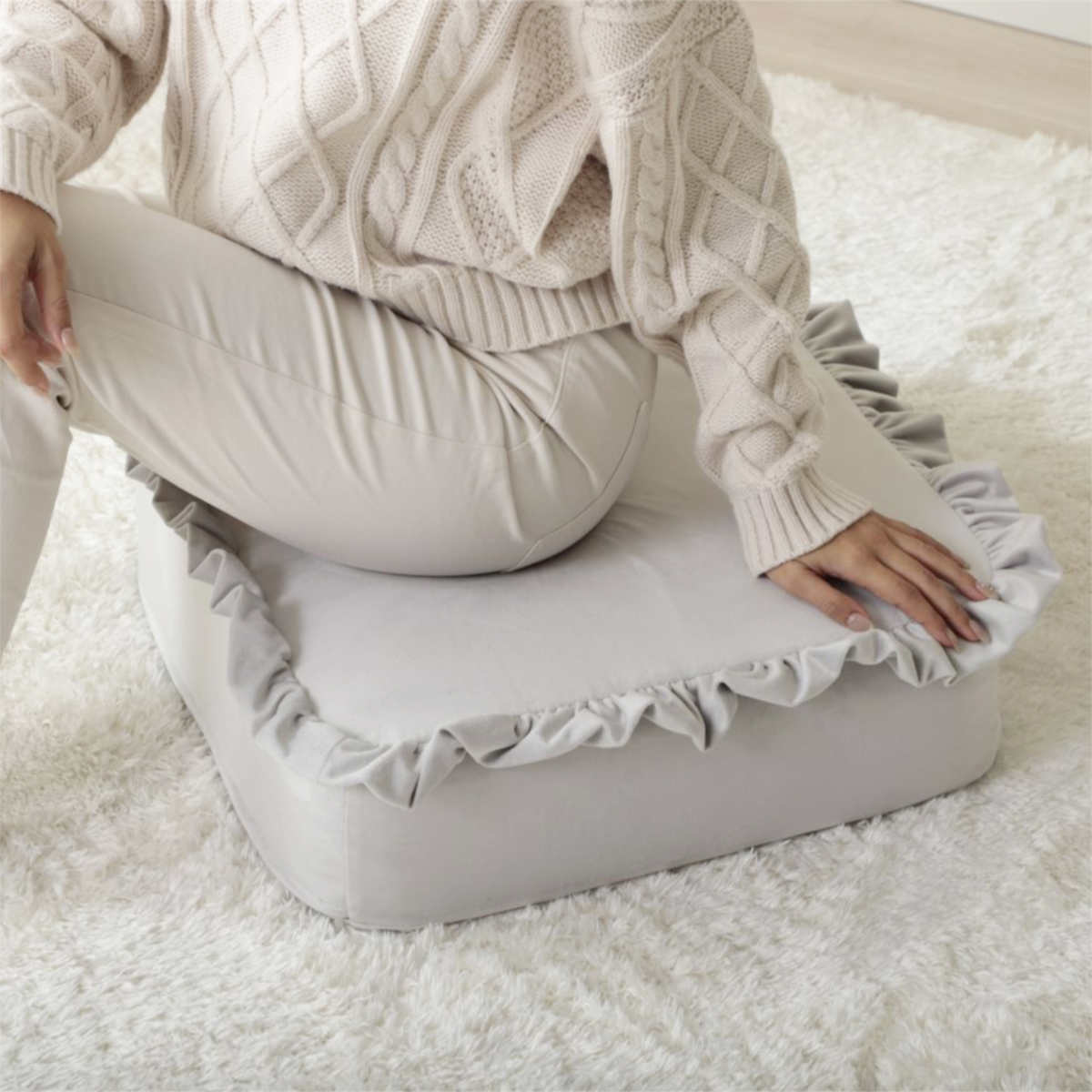 座布団としてはもちろん、ちょっとした枕やごろ寝クッションとしても使える便利なデザイン。シーンに合わせて自由に使える、毎日のくつろぎに寄り添うクッションです。