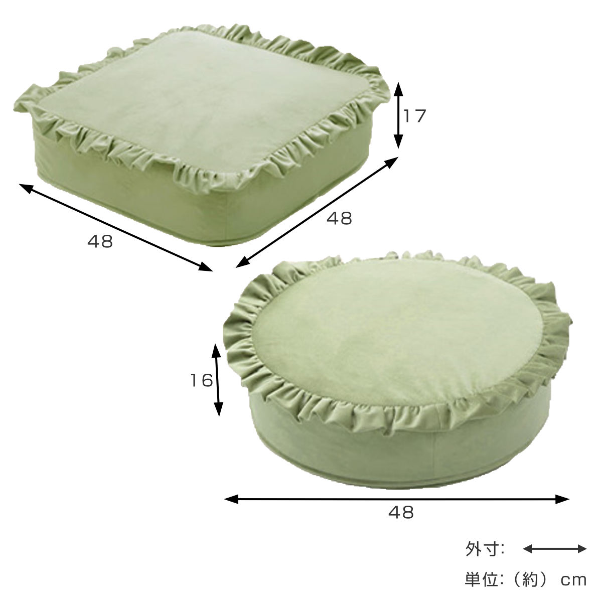 | サイズ | 【スクエア】 約 幅48×奥行48×高さ17cm 【ラウンド】 約 幅48×奥行48×高さ16cm |