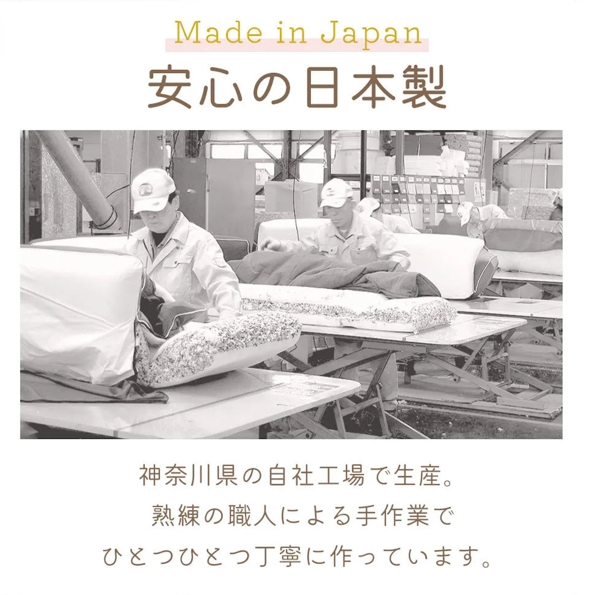 低反発ウレタンを使用し、少し固めでもちっとしたクッション性を実現しました。身体を優しく受け止めながらもしっかり支え、長時間座っていても疲れにくい快適な座り心地のミニクッションです。品質にこだわった安心の日本製です。