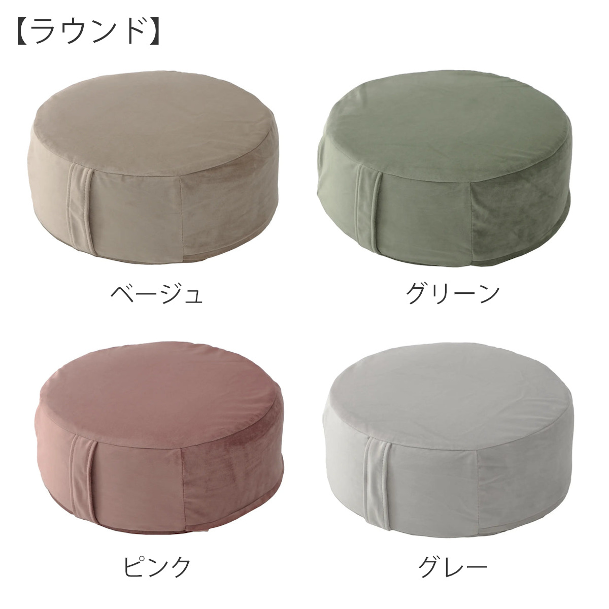 形状は「スクエア型」と「ラウンド型」の2タイプからお選びいただけます。カラーはピンク、グレー、ベージュ、グリーンのくすみカラー4色展開です。やさしい色合いがインテリアにすっと溶け込み、お部屋をやさしくオシャレに彩ります。